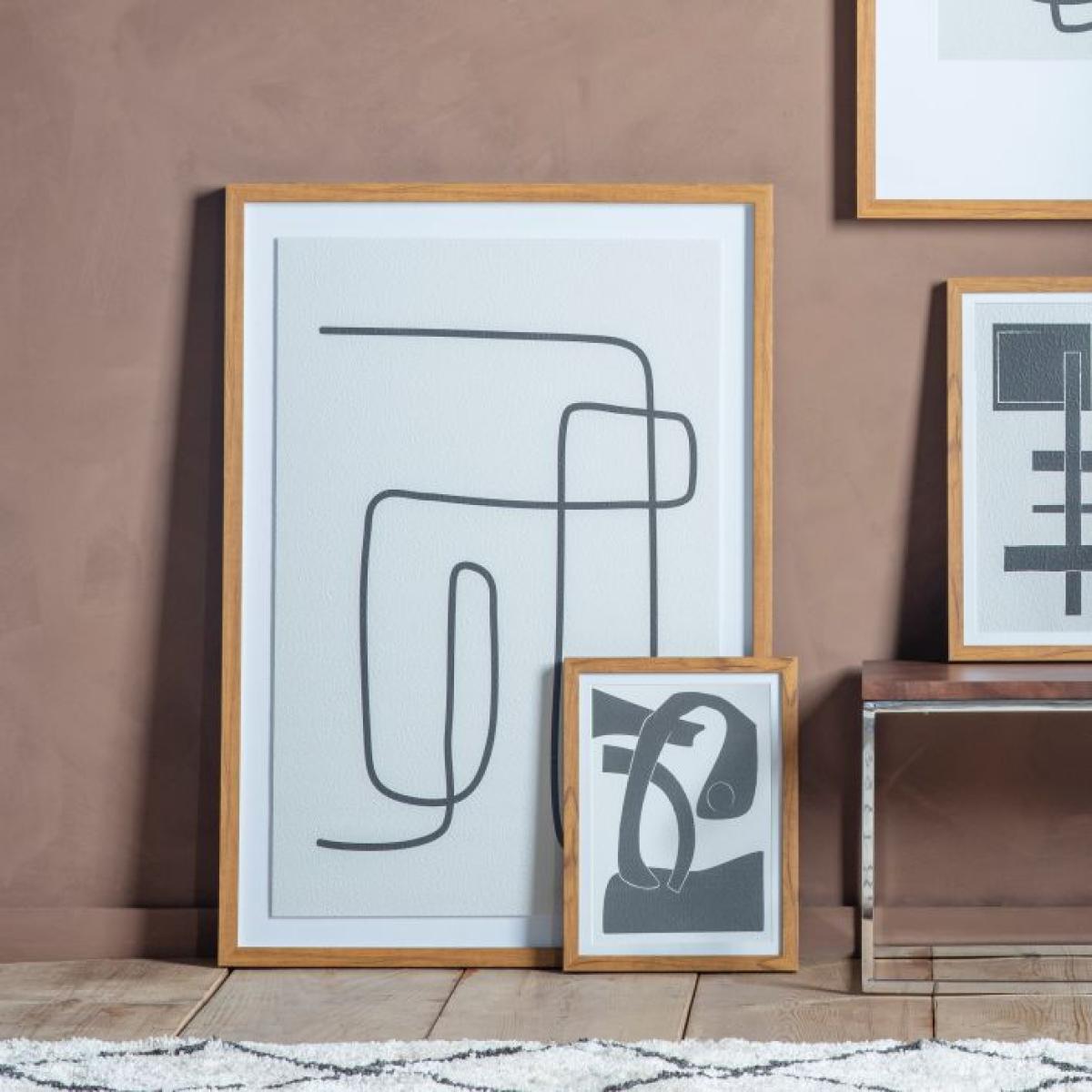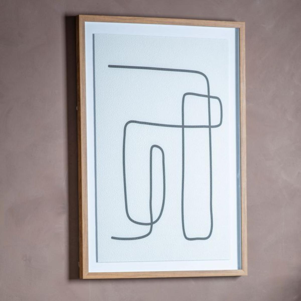 I love this piece - the line drawing minamilist design makes it versatile and contemporary. It works well in modern or minimalist interiors, adding a subtle graphic element without overwhelming the space. Practical styling tips include pairing it with muted or monochrome colour schemes to let the artwork stand out, or grouping it with other abstract pieces for a curated gallery wall. It’s a great size for spot-lit wall areas above a sofa or console, and the wooden frame adds warmth that complements natural textures like wood furniture or linen upholstery. Overall, it’s an elegant yet understated artwork that can anchor a room’s decor effortlessly.