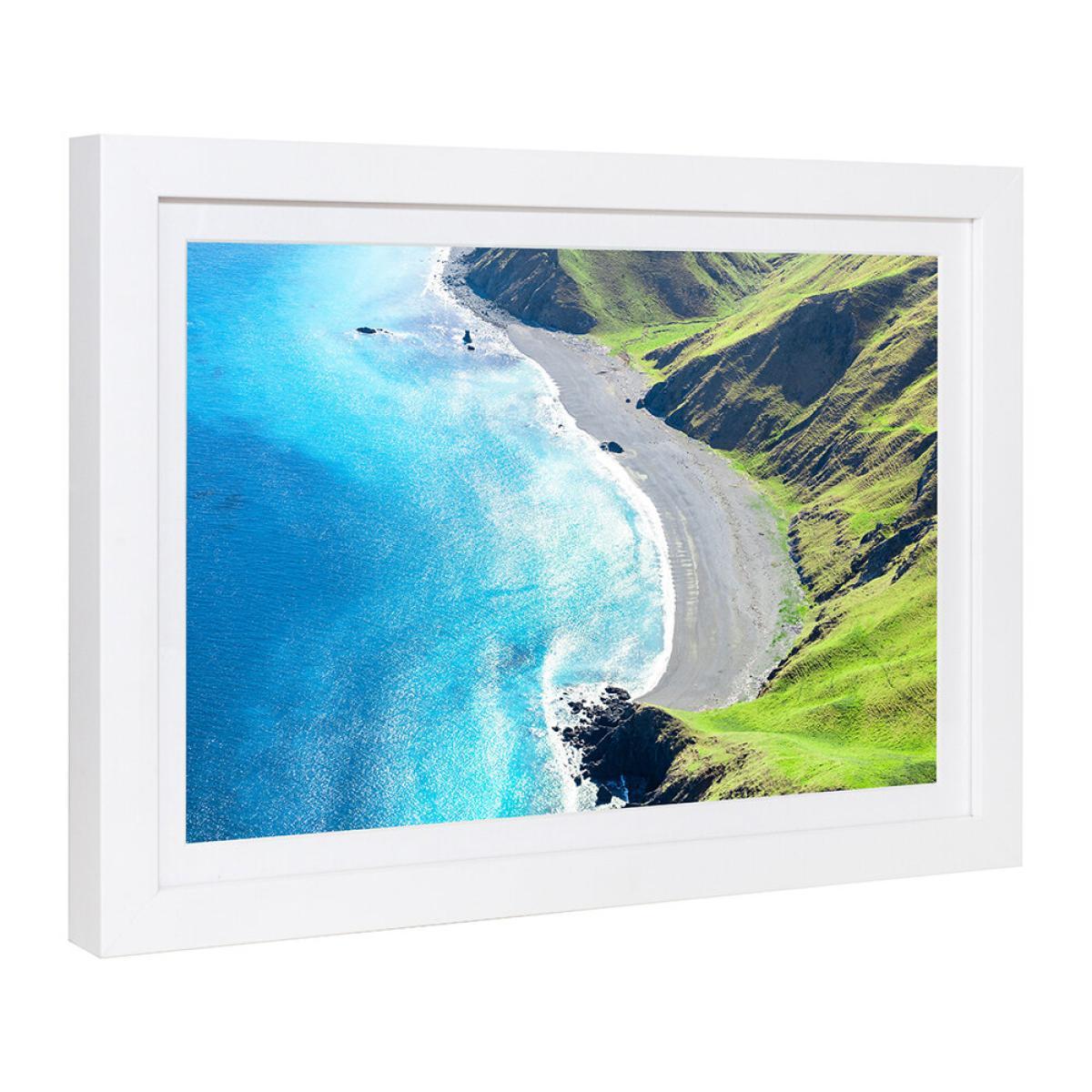 Show your love for the beach with this Marlborough Coast, New Zealand wall art from Gray Malin. Photographed from a doorless helicopter while exploring New Zealand, the aerial shot shows a beautiful black sand beach.