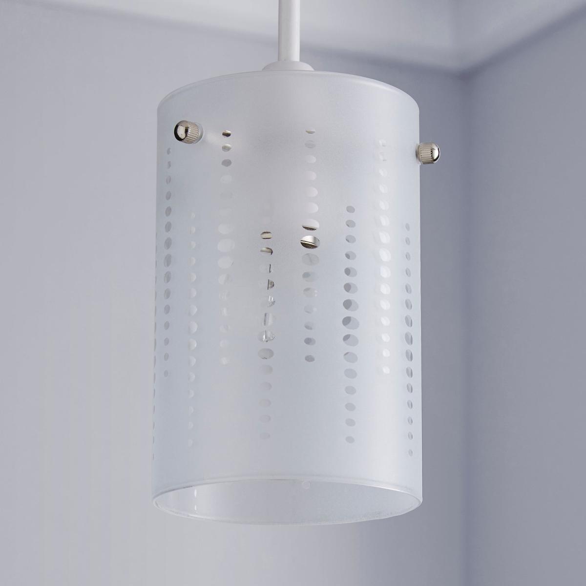 Featuring a glass cylinder pendant with an etched frosting polka dot pattern, this light would be a simple yet stylish addition to a range of rooms. Click. Here. To view our range of bulbs.