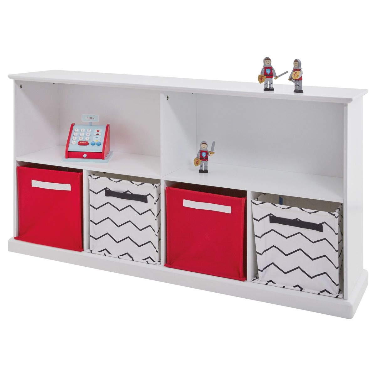 This practical and sturdy shelving unit from the Great Little Trading Co is ideal for keeping their toys and belongings neatly stored away. Crafted from MDF in a neat painted finish, it features two spacious drawers and four cube units with ample storage space. Ideal for bedrooms or play areas, in the interests of safety, please always use the Anti Tip Safety Straps supplied with this product.