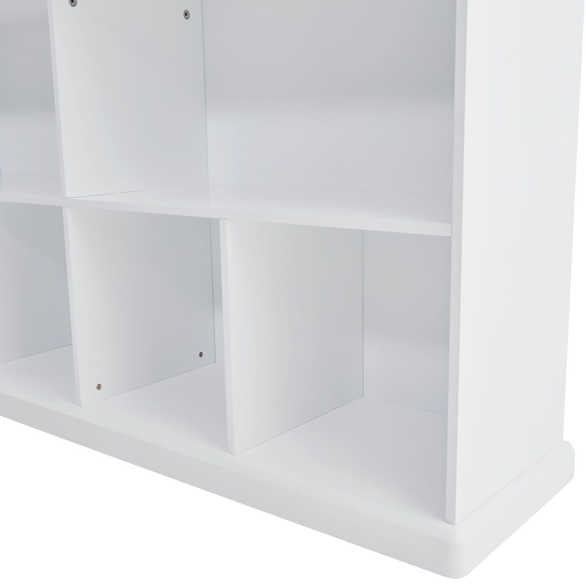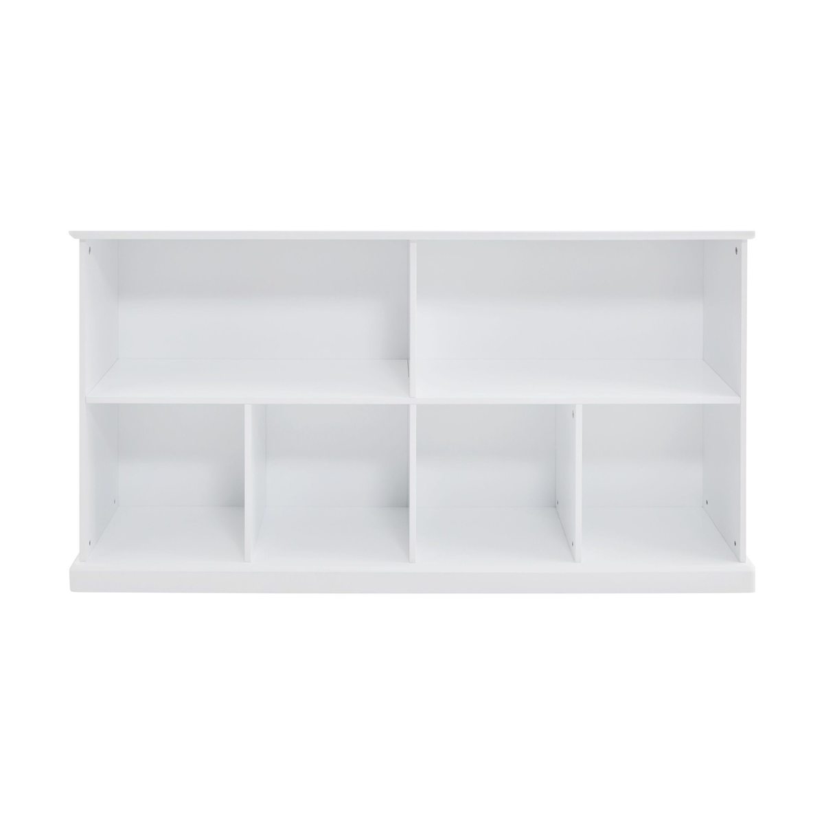 I’m a fan of the Abbeville long shelf unit because its crisp white finish and simple lines make it a versatile base for all kinds of schemes - from Scandi-inspired living rooms to a pared-back home office or a painted-wall children’s corner. The mix of two larger upper bays and four smaller cubbies gives you clues for organised styling: use the top shelves for a row of books, art-leaners or a pair of matching vases, then tuck baskets or labelled boxes into the lower compartments to hide clutter. For a balanced look, alternate items of differing heights and textures, and allow a little breathing space in each section rather than filling every shelf edge to edge.