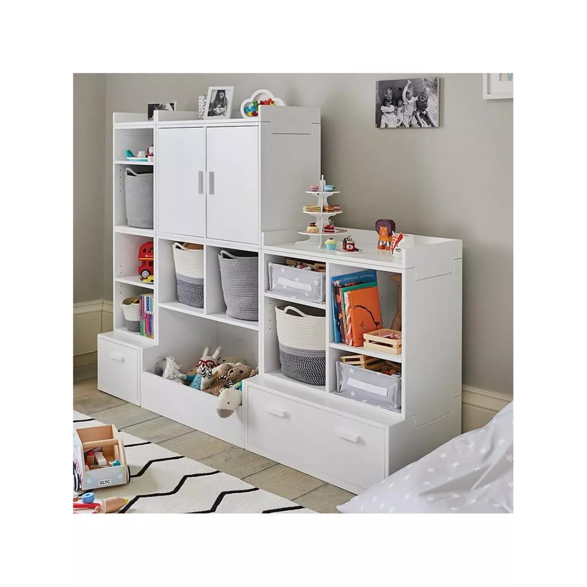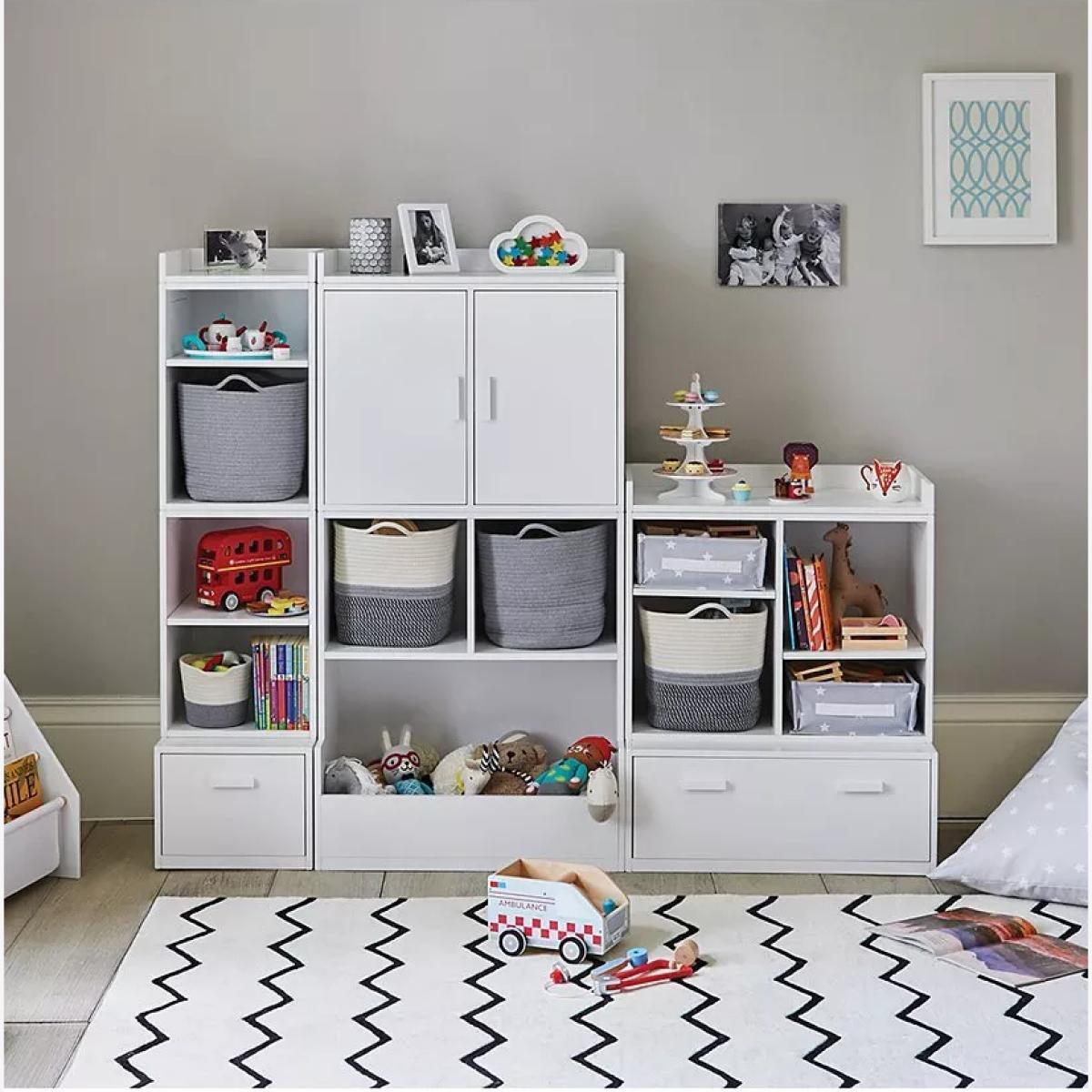 Ideal for smaller spaces, this clever modular set comprises a toy box and two storage units. Full of storage potential it will smarten up any room with its stylish good looks and versatile design.