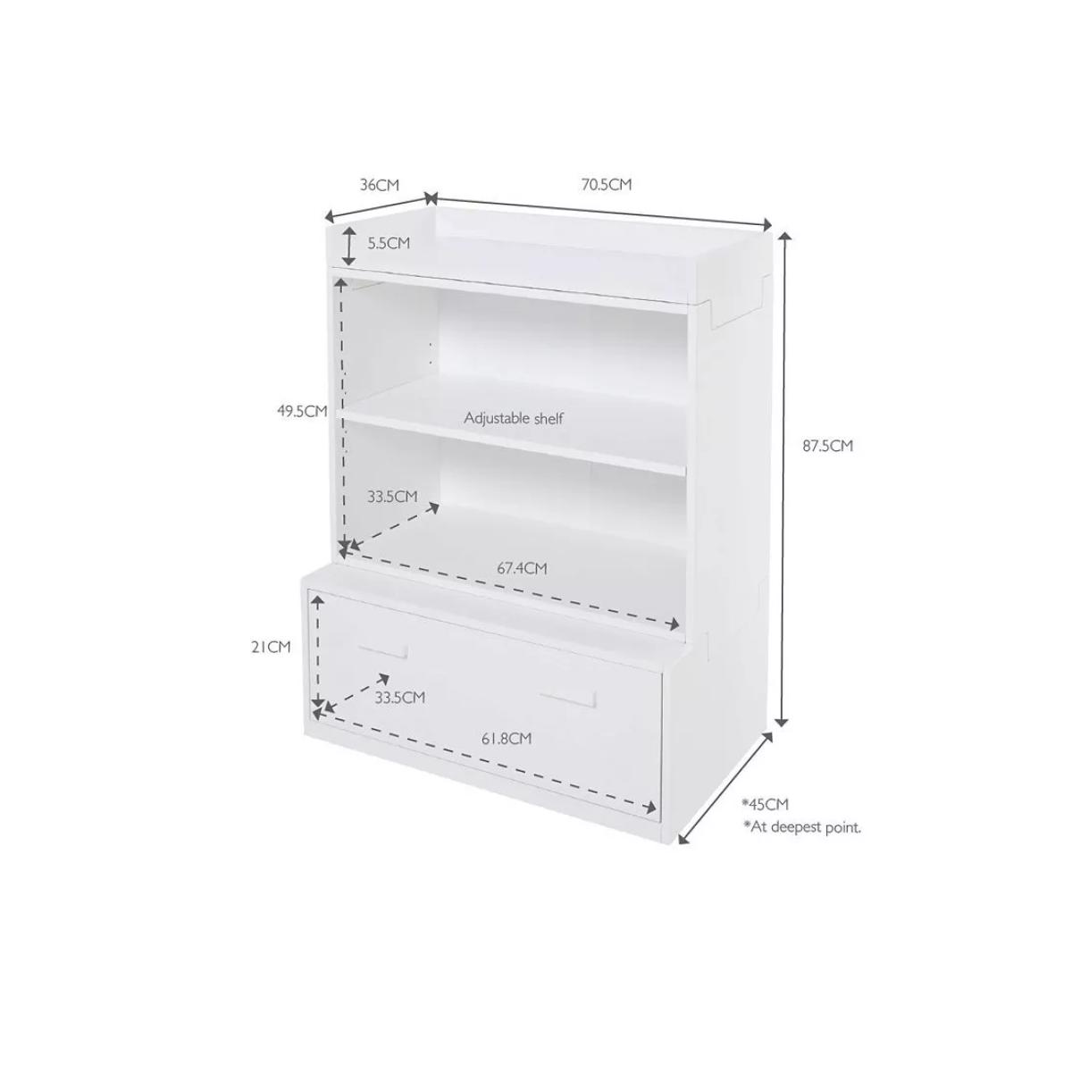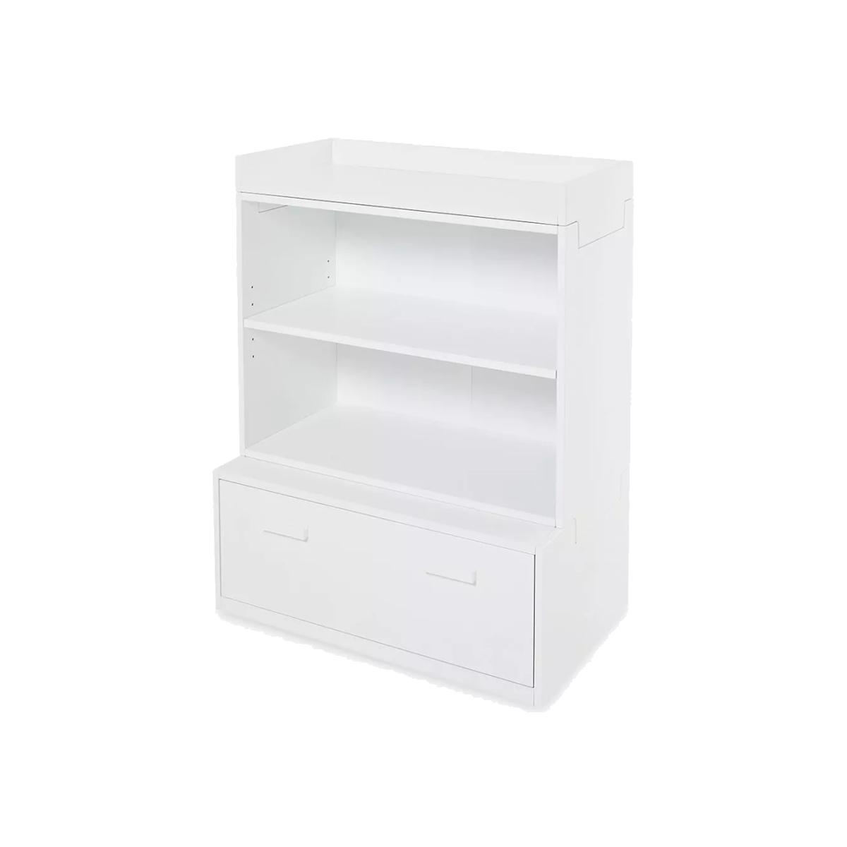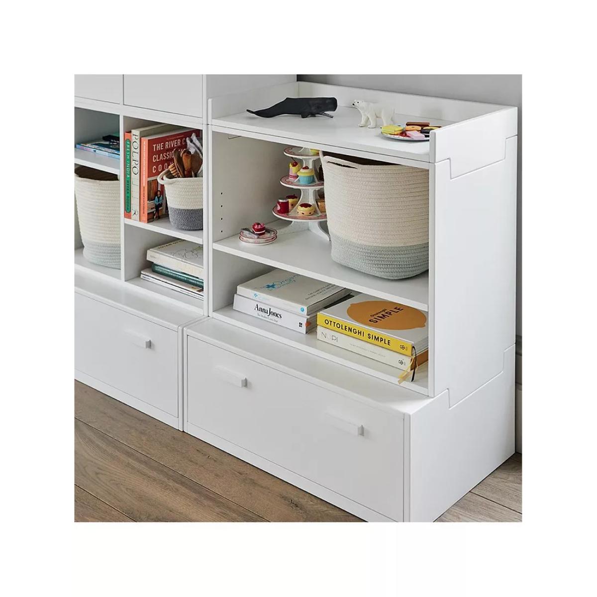 This sweet storage set works well in smaller spaces. With the option to stack coordinating pieces on top, this mini modular must-have is a winning combination.