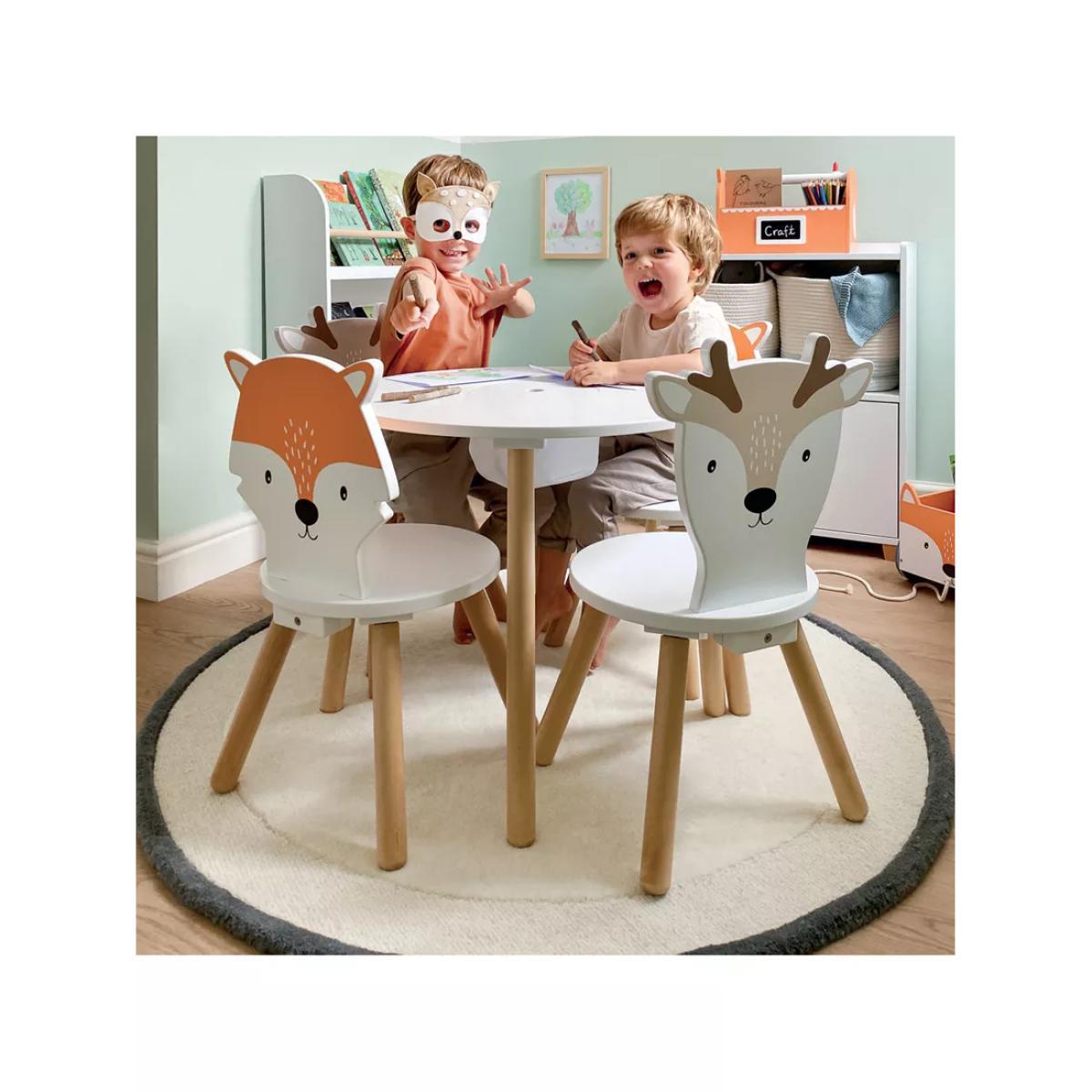 This sturdy chair is made from MDF with solid birch wood splayed legs. It's the perfect size for toddlers and they'll love the adorable fox design on the front and back. Ideal for their arts and crafts area.