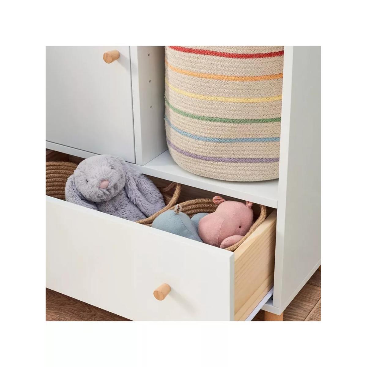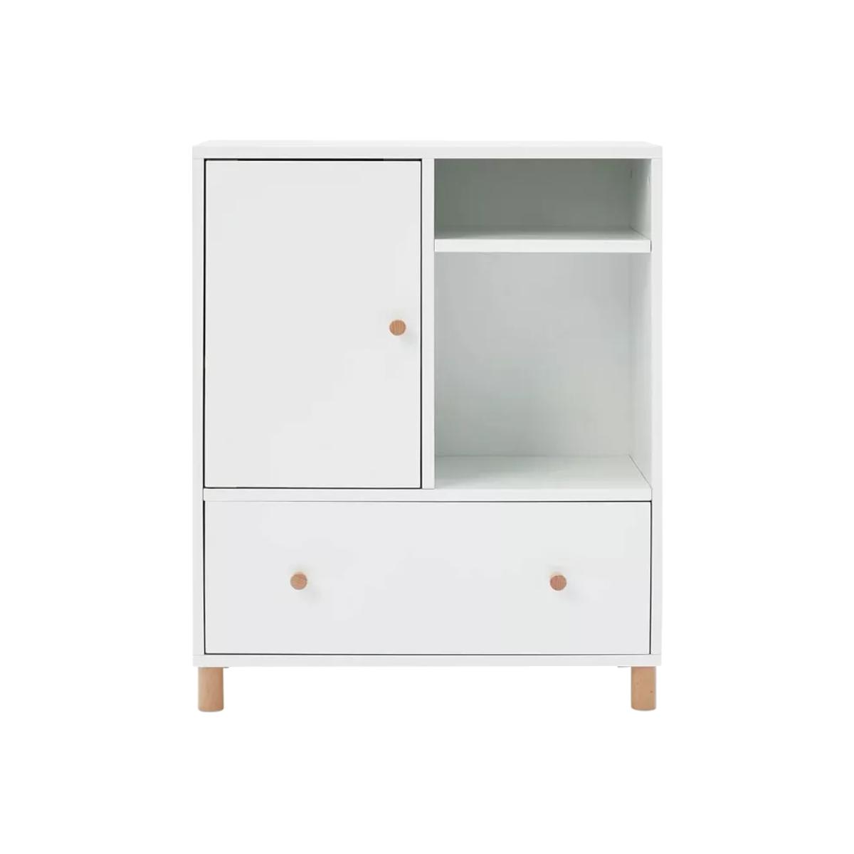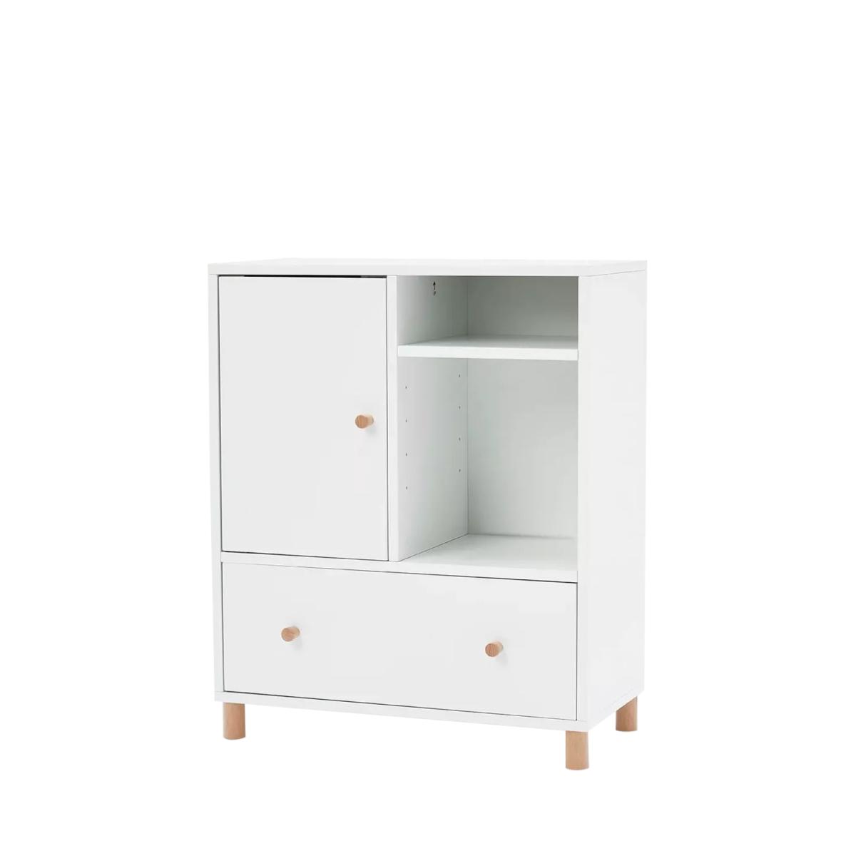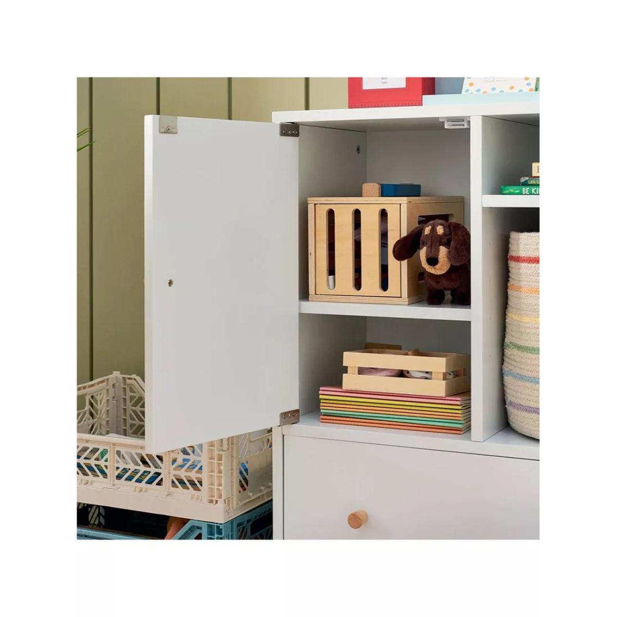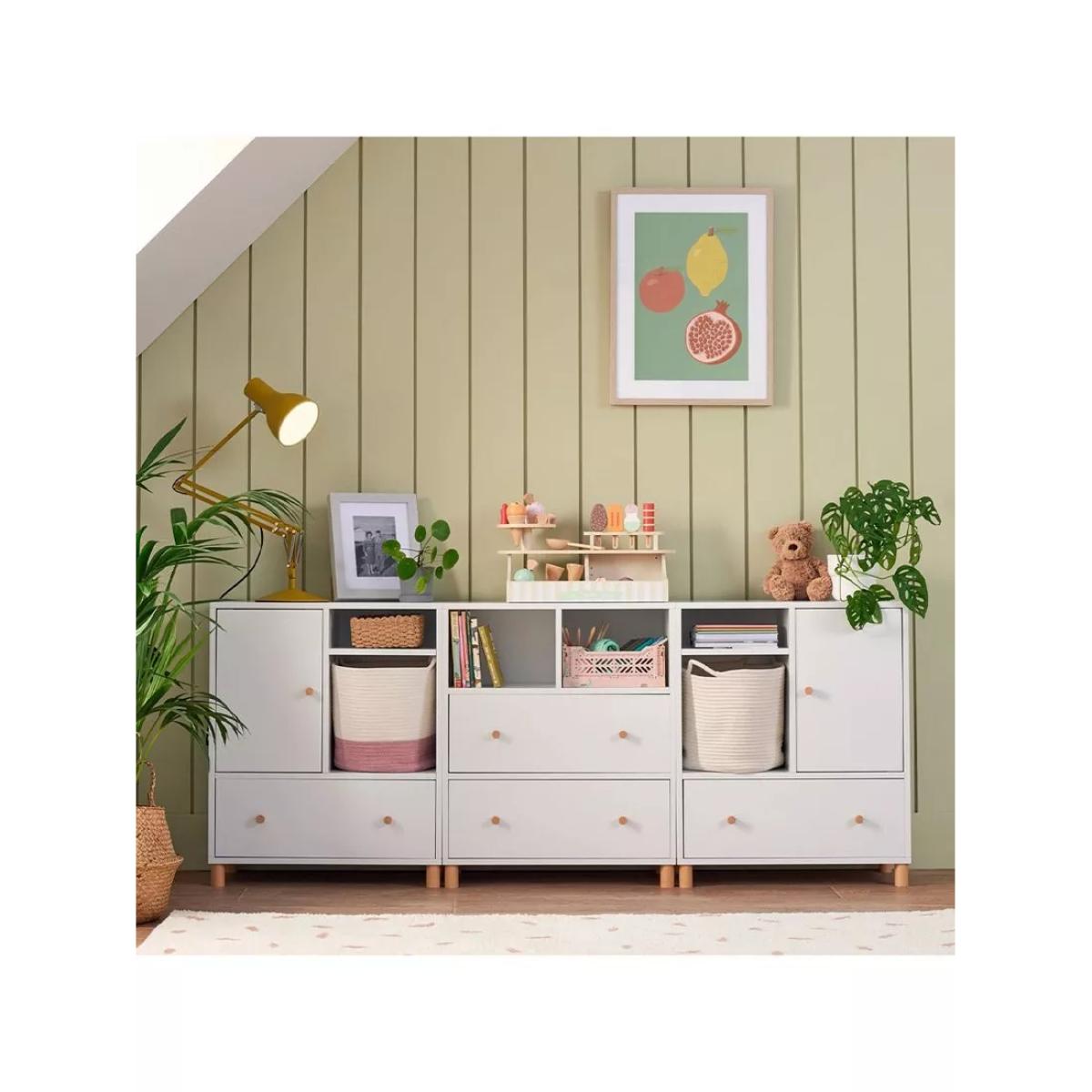 The Bloomsbury Sideboard Cupboard is a stylish and versatile storage solution designed to enhance any family space. Whether used on its own or paired with the right-hand side cupboard and drawer unit as part of a modular set, this cupboard offers flexible and practical storage options. The open units are perfect for organizing puzzles, games, and toys, while the deep drawer and cupboard offer a hidden space for clutter and toy rotation. Add storage baskets or cubes to keep small items like Lego pieces, cars, and action figures neatly organized and out of sight. With natural wood knobs and raised legs, the Bloomsbury Sideboard brings a contemporary and calming touch to your home. Whether you need one, two, or three units, this range is designed to fit any space and provide the perfect balance of style and functionality. Key Features: Versatile Design: Can be used as a stand-alone unit or paired with the right-hand side cupboard and drawer unit for expanded storage Ample Toy Storage: Open units are ideal for puzzles, games, and toys, while the deep drawer and cupboard provide hidden storage for easy toy rotation Modular Flexibility: Part of the Bloomsbury modular storage range, offering customisable configurations with one, two, or three units to suit your needs and space Stylish and Contemporary: Features natural wood knobs and raised legs, adding a calm, modern aesthetic to any family room or play area Safe and Secure: Includes an Anti-Tip Safety Kit for added safety