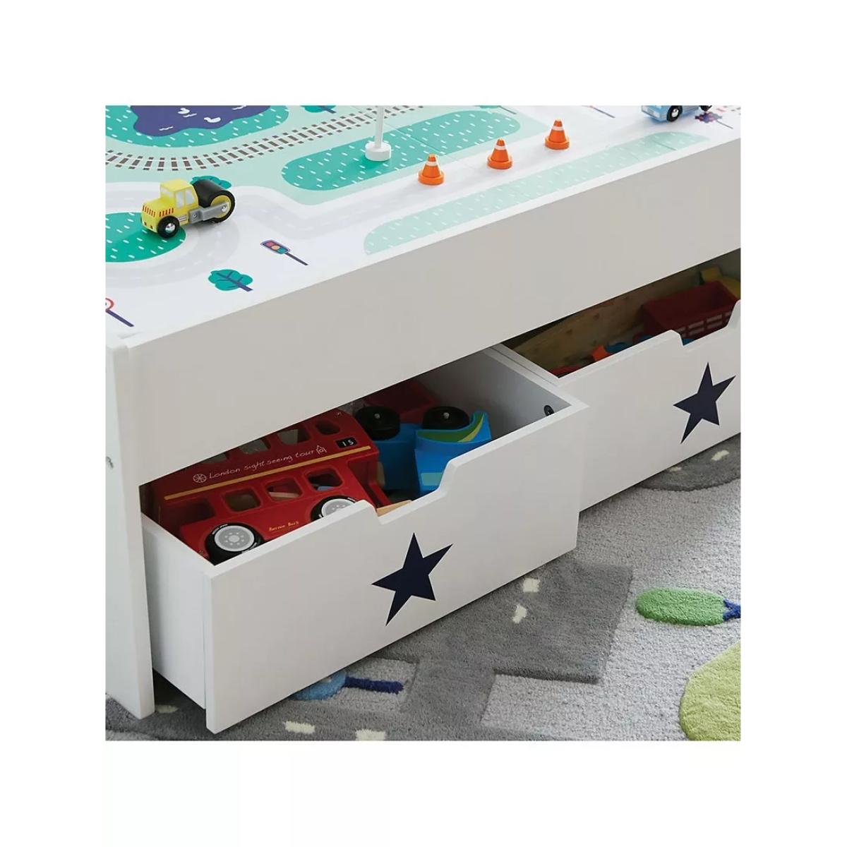 This sturdy play table from GLTC has a generous storage area for toys underneath a beautifully illustrated play map. Flip the lid to reveal the plain white reverse and transform it into a cool, contemporary coffee table when the kids have gone to sleep.