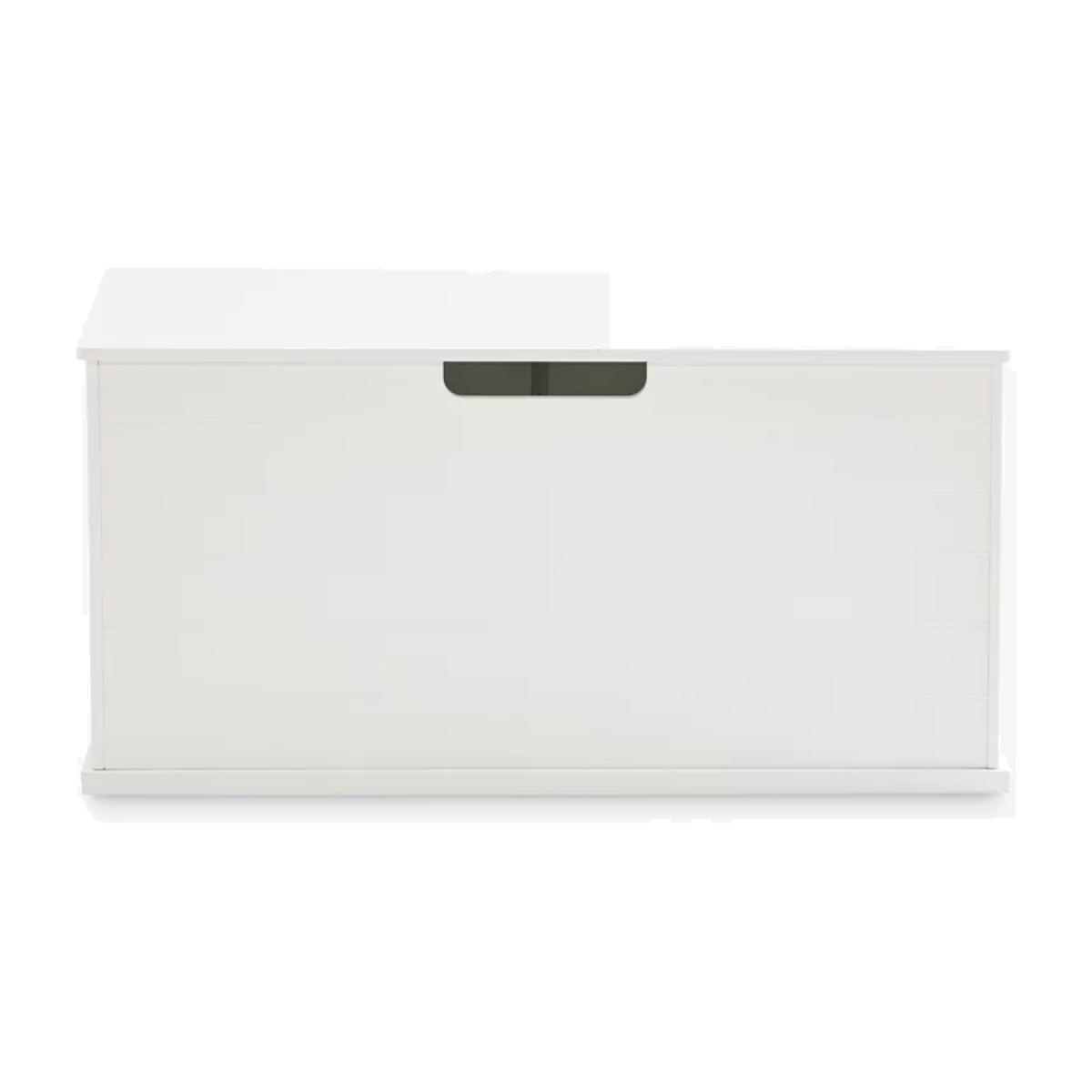 I love this box because it combines practicality with subtle style. It works particularly well in minimalist or Scandi-inspired interiors, where its clean white finish provides a fresh, unobtrusive look. The grey cushion on top adds a cosy touch, making it perfect as a subtle seating option in a living room or play area. For styling tips, consider pairing it with soft textures and neutral tones to keep the space calm and cohesive, or add colourful accessories for a pop of colour without overwhelming the room. It’s a versatile piece that can function as both a storage solution and a casual seat, making it ideal for family spaces or children’s bedrooms.