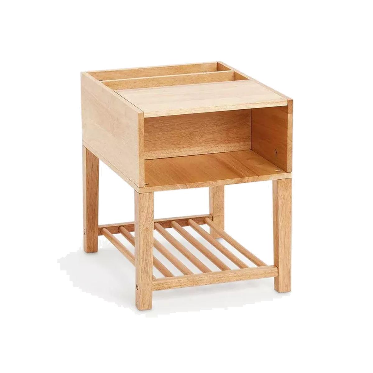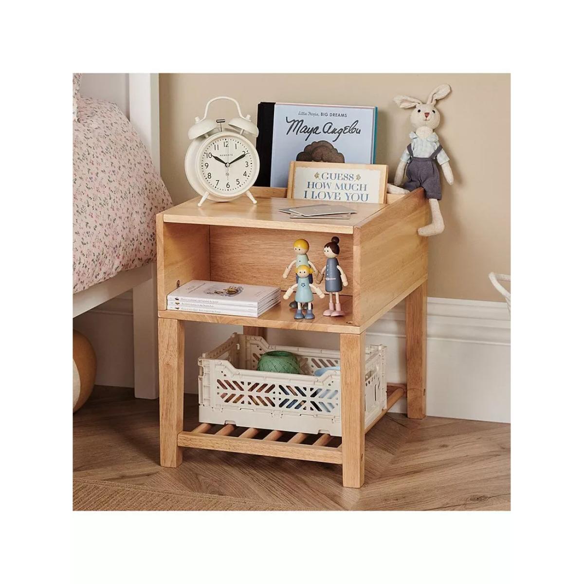 Say goodbye to the bedtime delay tactics! The Croft storage is so much more than just a bedside table. This clever little unit is designed to make bedtime easier, with a spot for a drink, space for a nightlight and open storage for cuddly toys and comforters. Its front-facing sunken ledges help children to choose their favourite books for the week and have them ready. No more “I just need to get…” Why we love it It's made from solid wood in a blocky style that looks great in any bedroom style. The warm natural tone creates a calming bedroom environment and works well with any colour scheme.