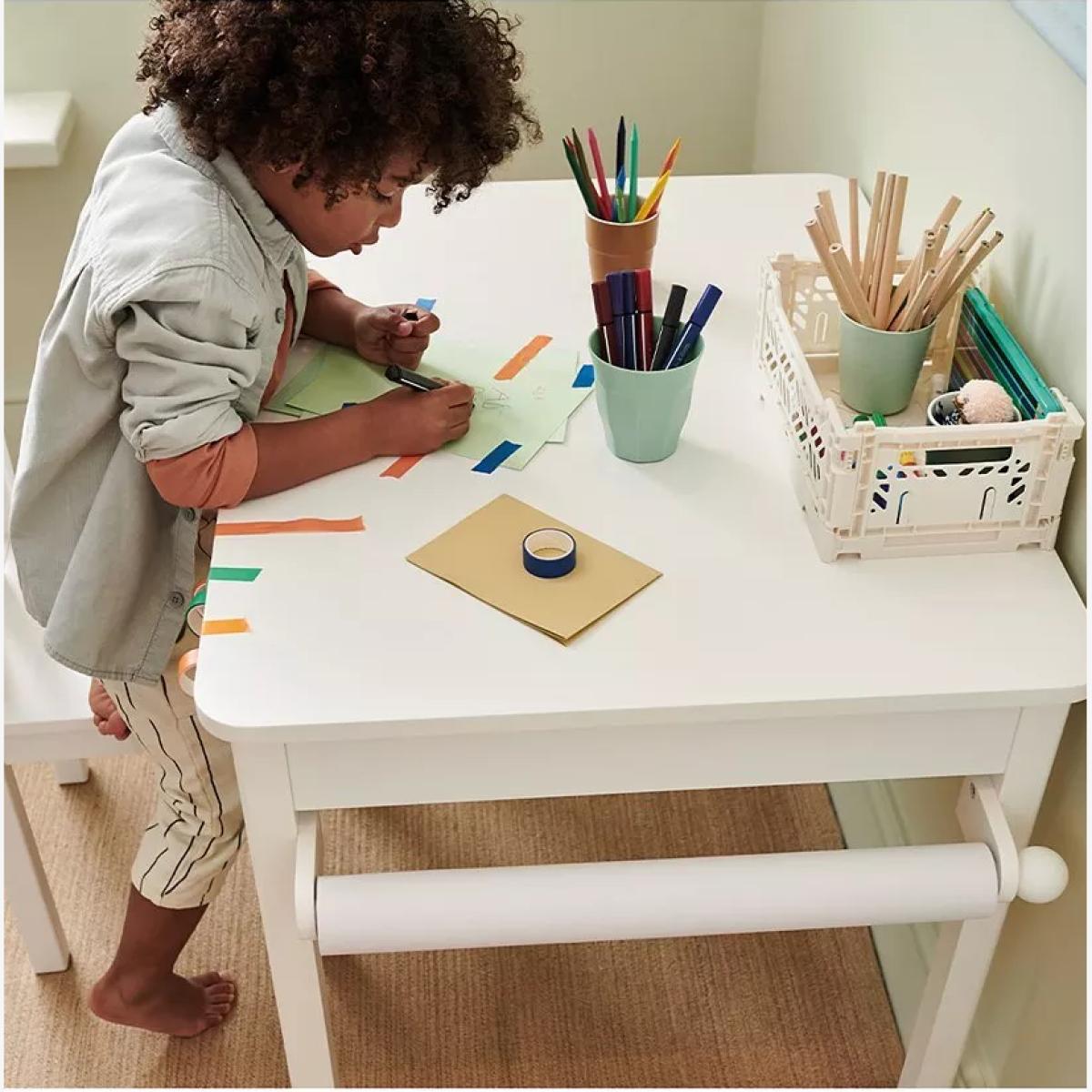I love the Great Little Trading Co activity table because of its versatile and practical design, making it perfect for both play and creative projects. It works particularly well in contemporary or Scandi-inspired interiors, especially when paired with soft, neutral textiles to keep the space calm and organised. For styling, consider adding some colourful storage jars or open shelves nearby to encourage easy access for little ones’ art supplies, helping to keep the area tidy. This table also lends itself well to being part of a dedicated children’s corner or playroom, where its functional yet simple look can blend seamlessly into an overall minimalist aesthetic.