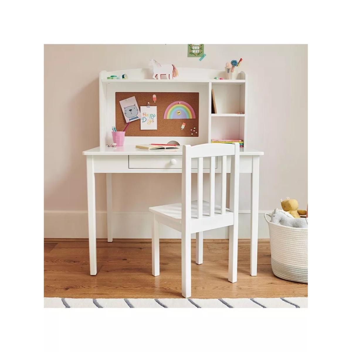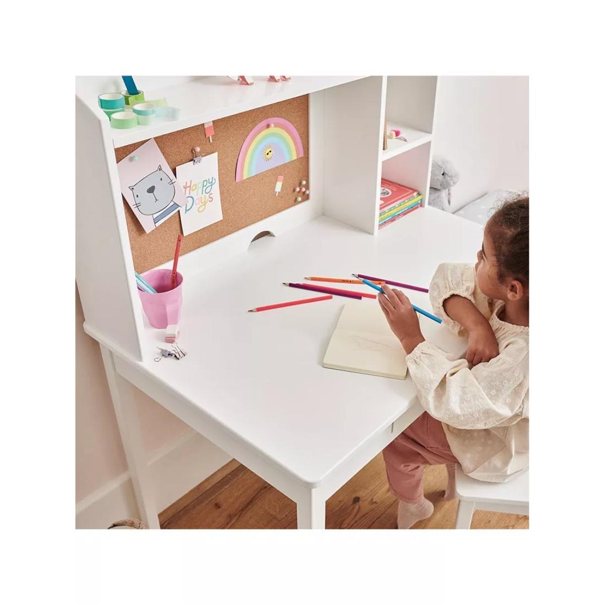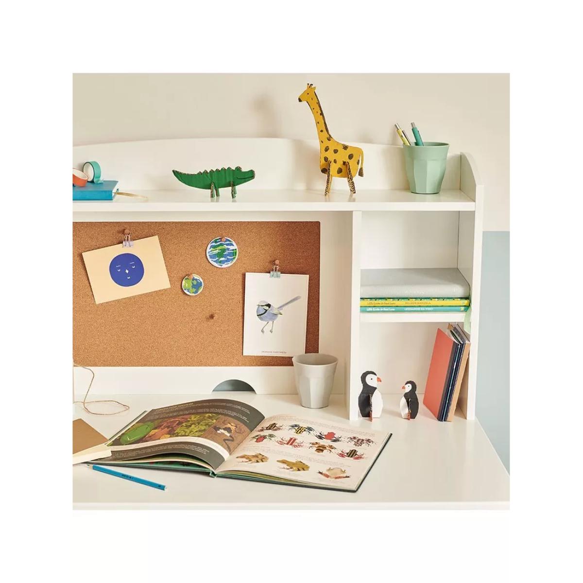 The Junior Whittington Desk & Hutch by Great Little Trading Co. is a versatile desk that can grow with your child. The Junior height of this desk is ideal for ages 3-8, but once your child grows taller you can replace the legs with the taller height recommended for ages 5-12. This desk offers a place to craft or study and the corkboard backing provides the ideal place to store reminders or achievements. The 2 cubby holes and shelf on the top provide plenty of storage too for books, memorabilia and accessories so they can create their own space they are proud of. There's also a central storage drawer to hide away clutter too as well as an opening at the back for cables so you can plug in their technology. It really does have everything!