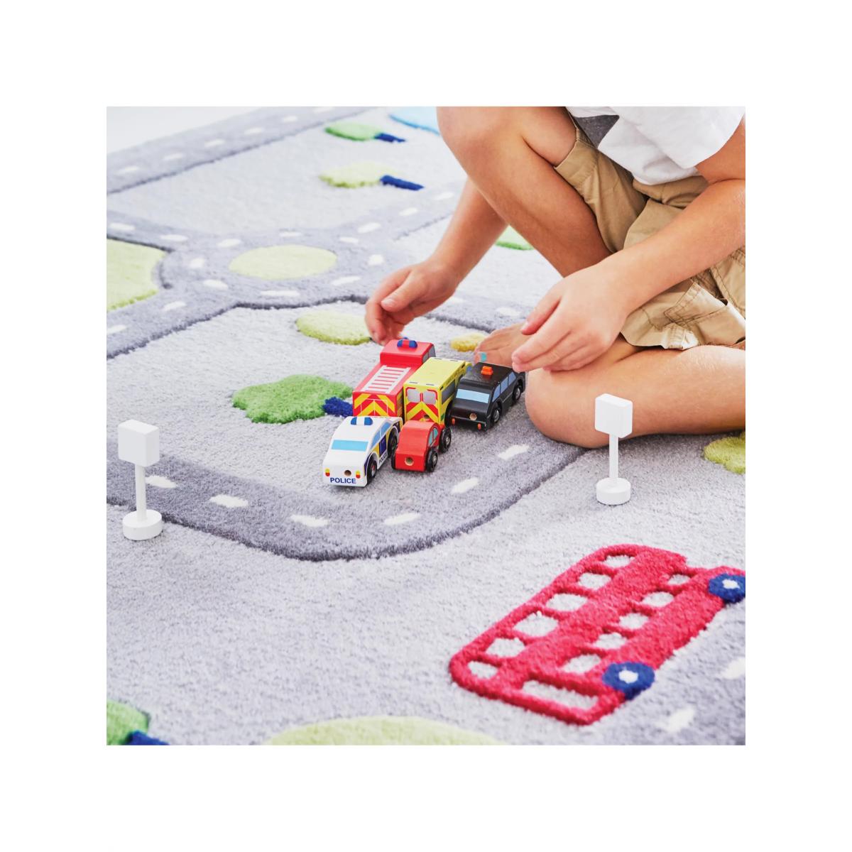 Add some fun to your little one's play space with this stunning, children's rug, crafted from soft wool. This cute kids' room essential features a transport-themed pattern that doubles up as a playmat - perfect for all their mini adventures.