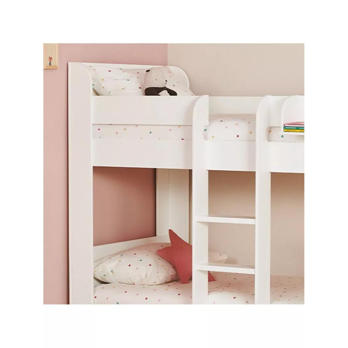 The Great Little Trading Co Paddington Bunk, Single in white is a versatile piece that works well in both modern and traditional children’s bedrooms. I love how its clean, minimalist design can seamlessly blend into various colour schemes and décor styles, making it a practical choice for growing spaces. It’s ideal for small rooms where space efficiency is a priority, as it maximises sleeping arrangements without clutter. For styling, I recommend pairing it with soft, pastel or neutral bedding to keep the look light and fresh, and add some colourful cushions or throws for personality. To keep the room feeling airy, use under-bed storage containers or baskets for extra organisation. This bunk is a smart, durable option that combines functionality with a contemporary aesthetic, perfect for creating a stylish yet practical kids’ space.