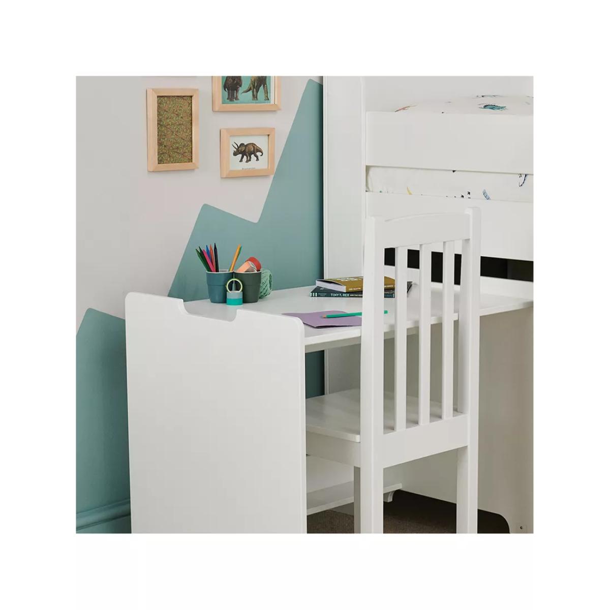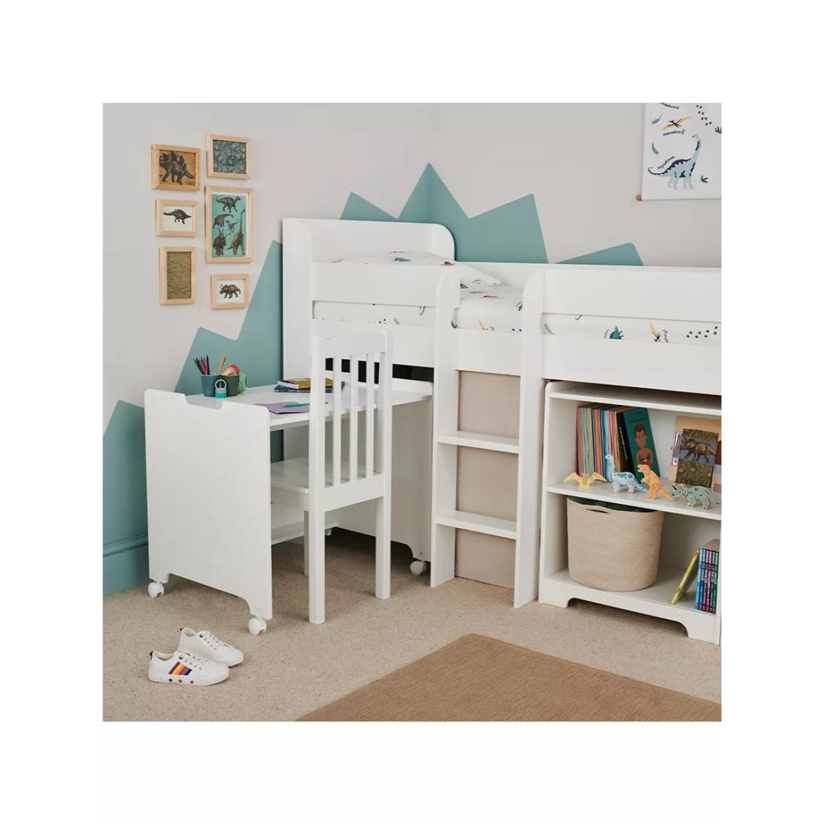 This smart roll-out desk is a clever add-on to GLTC's Paddington Mid Sleeper Bed. It slots neatly underneath to save on space and rolls out to create a smart study space. Like all GLTC children's furniture, this desk is constructed with safety in mind. It's coated with a durable, painted finish so you can still make use of it even when your child has waved goodbye to the bed.