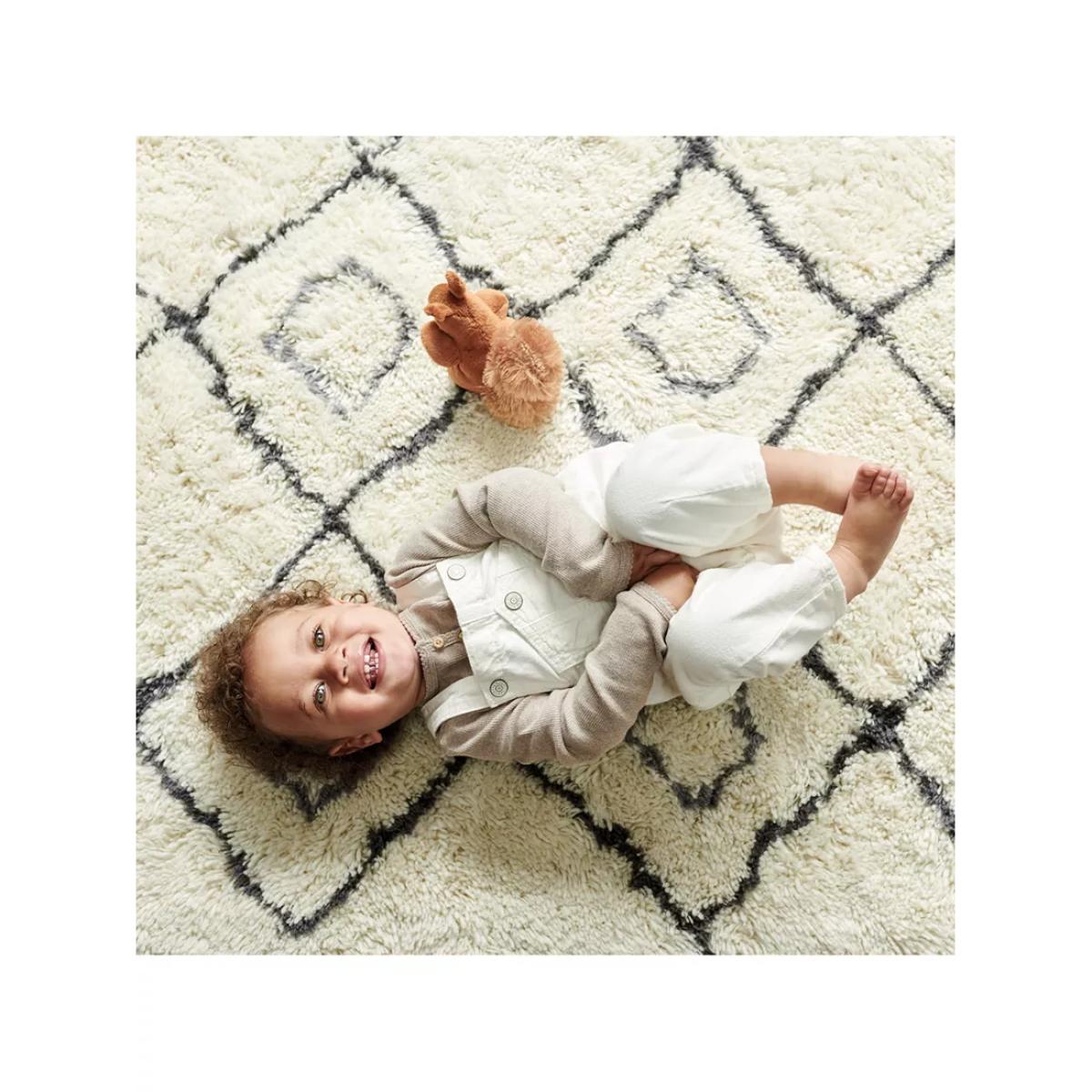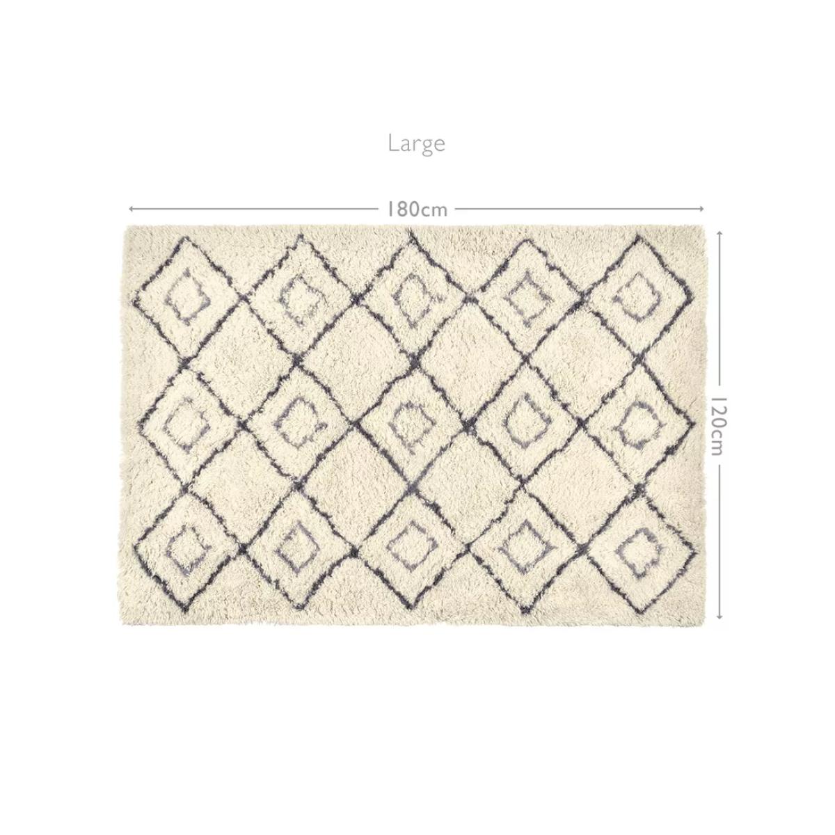 I love this rug for its versatile, understated design which makes it a great base in both contemporary and traditional interiors. Its neutral tone and simple diamond pattern allow it to work well in living rooms, bedrooms, or play areas, adding warmth and texture without overwhelming the space. Practical styling tips include layering it with larger, more textured throws or placing it under a sofa or bed to define seating or sleeping zones. It’s also durable enough for high-traffic areas, making it a smart choice for busy family homes. Overall, it offers timeless appeal with a touch of cosy comfort that fits seamlessly into various interior schemes.