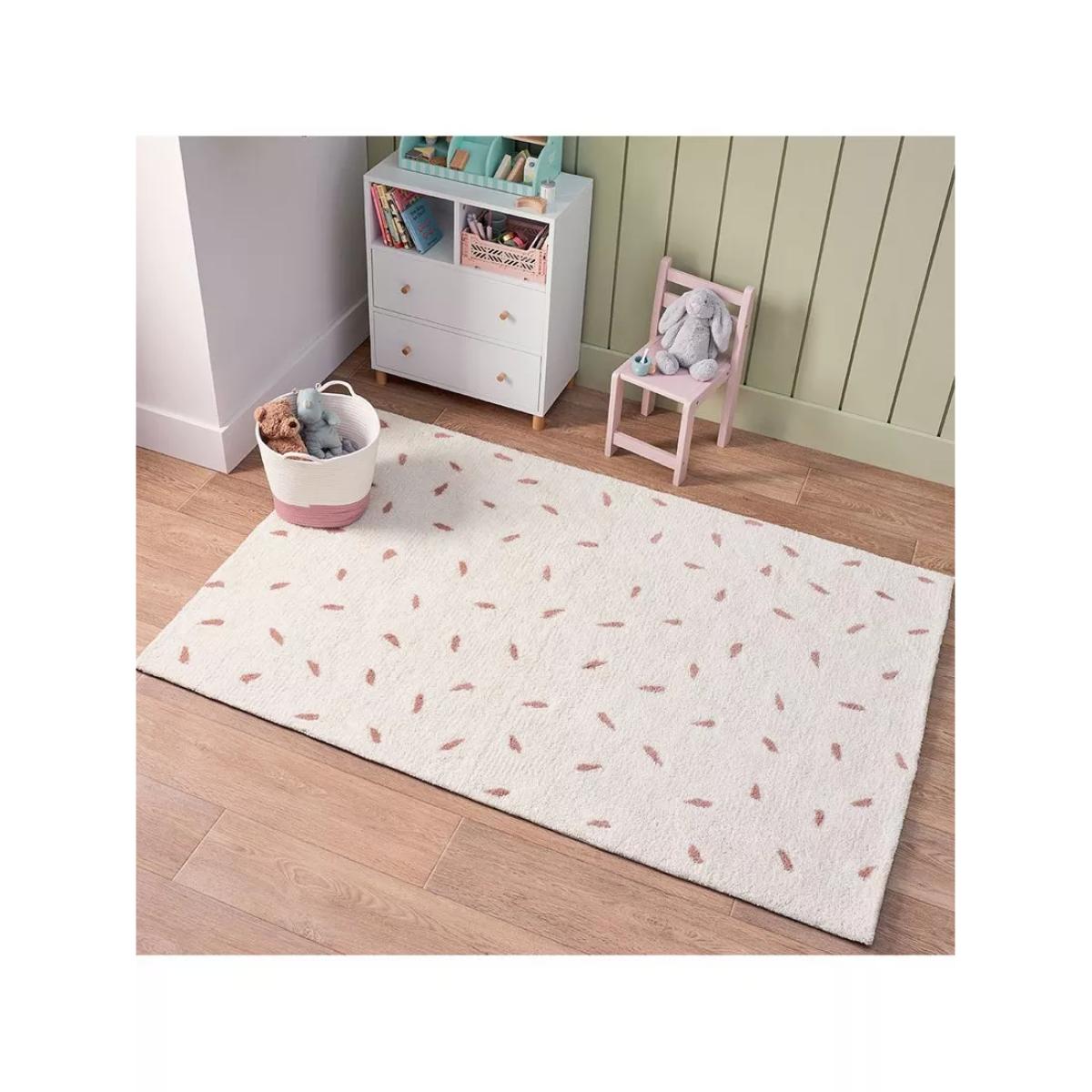 This 100% wool hand-tufted rug is great for shared spaces. Made from a thick pile it feels really luxurious and will create a calm space for a living room, bedroom or playroom. With a natural ivory background and soft pink speckle pattern, it feels really contemporary but still warm.