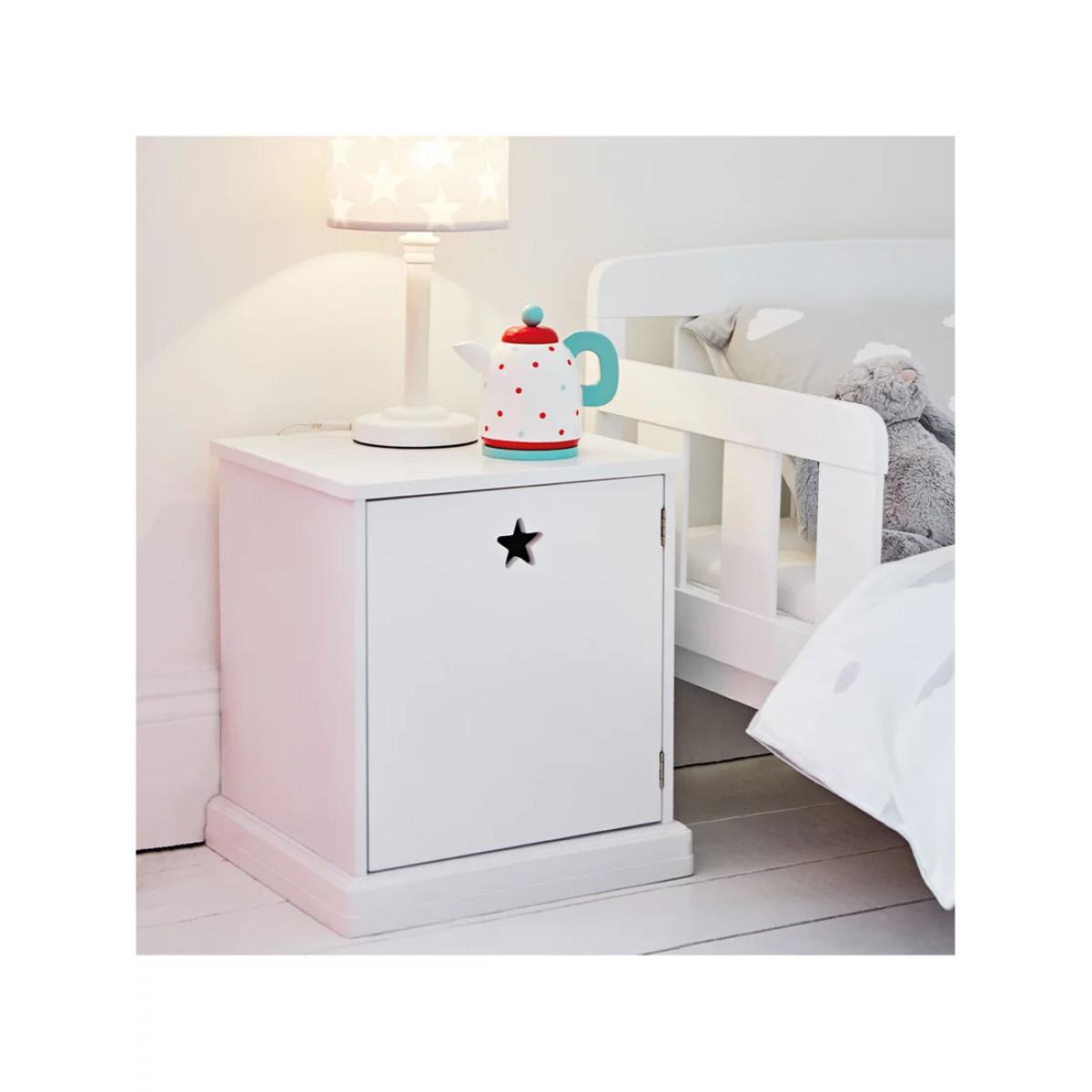 This bedside table from Great Little Trading Co is made from a high-quality, painted MDF and it has been coated in a lacquer for durability. Sturdy and functional, the hinged door opens to reveal an internal shelf, so it's ideal for keeping their bedside essentials in order. The cut-out star on the front adds a playful design accent and it's supplied flat-packed for easy assembly. Want to see it first? You may want to see and get a feel for the furniture in one of our shops before ordering. We'll be able to tell you where the range you'd like to view is on display.