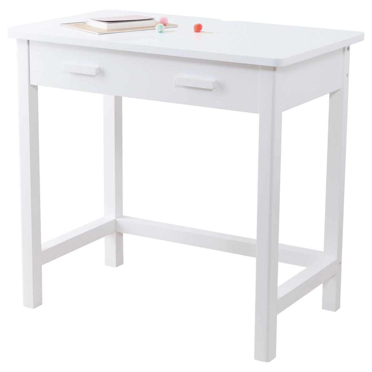 Perfect for ages 5+, this stylish and practical desk is the ideal addition to any child's bedroom or playroom. Whether used as a study space or an arts & crafts station, this versatile desk is designed to inspire creativity and productivity. Crafted from sturdy MDF with solid wood legs, the desk features a bright white finish, ensuring it blends seamlessly with any decor. It boasts a roomy drawer on smooth runners for easy access to supplies, while the cable opening at the back keeps cords and cables neatly organised and out of sight. Made from MDF with a painted finish. Size H75, W80, D50cm. 1 drawer. Weight 17.2kg. Self-assembly - 2 people recommended. If this product is over 60cm high it must be securely attached to the wall to prevent overturning. Package Dimensions: Package 1 dimensions: H19.5, W59.5, D92.5cm. Package 1 weight: 19.4kg.