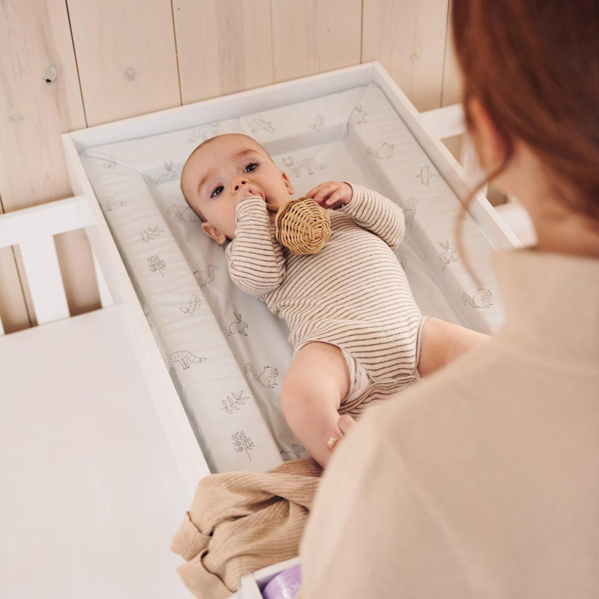 Add convenience and functionality to your nursery with the Little Wren Cot Top Changer, a smart and space-saving solution for parents. Designed to easily and securely slot onto the Little Wren Cot Bed, this changer provides the perfect height for comfortable and efficient nappy changes. The handy storage section keeps nappies, creams, and other essentials within easy reach, making changing time a breeze. Suitable from birth. Suitable for babies up to 11kg. Made from MDF. Cot Features Size L89, W50.5, H6.7cm. Weight 8.1kg. Mattress Features Mattress not included - use. General information Packed flat. Manufacturer's 1 year guarantee.