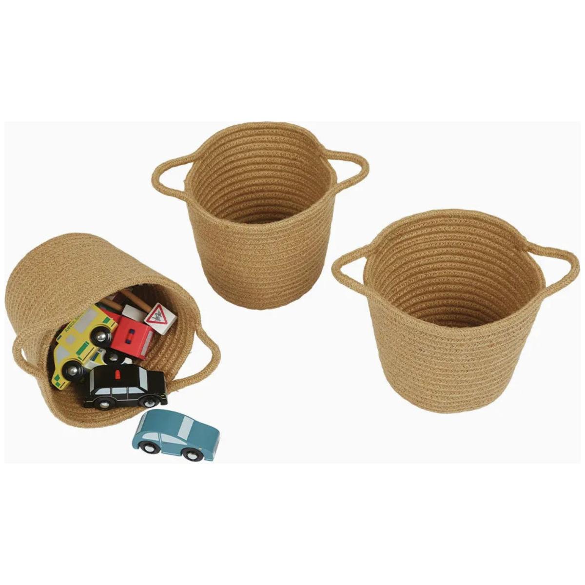 Struggling to keep those teeny tiny toys, blocks, or craft bits organised? Our set of three Mini Rope Storage Baskets is here to help! With a lovely warm natural tone, this stylish trio is the perfect solution for tidying up small items while adding a touch of charm to any room. Sturdy yet flexible, these baskets are soft on little hands, making them ideal for kids' spaces. Whether placed on shelving or nestled together in one of our larger storage units, these baskets offer versatile storage that looks as good as it works. Folds flat. Size H15, W18, D13cm. Weight 0.58kg. Fully assembled. Manufacturer's 1 year guarantee.