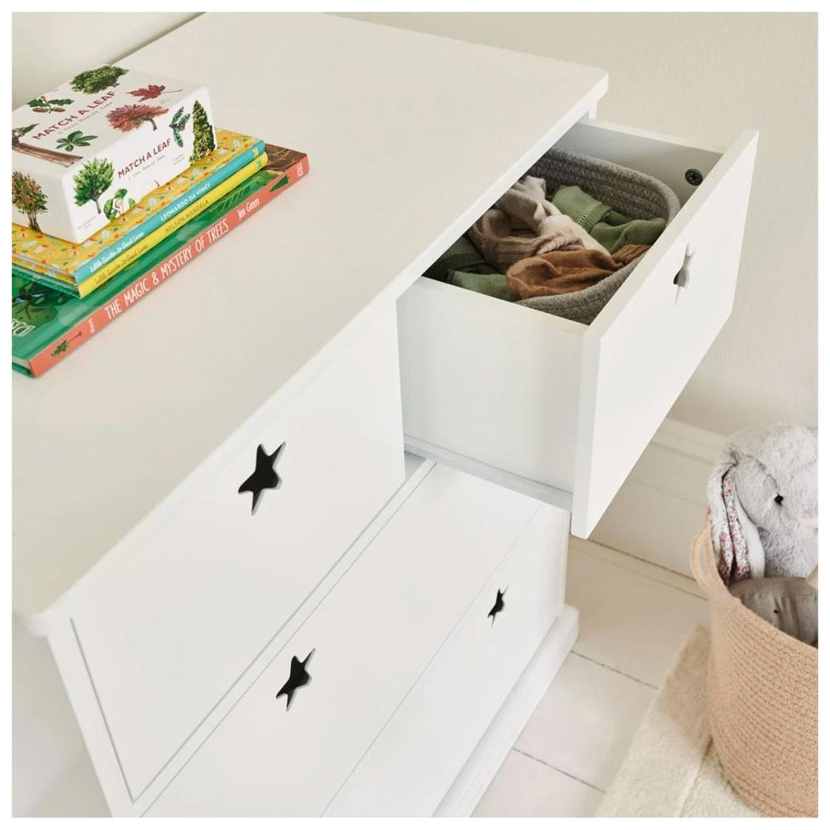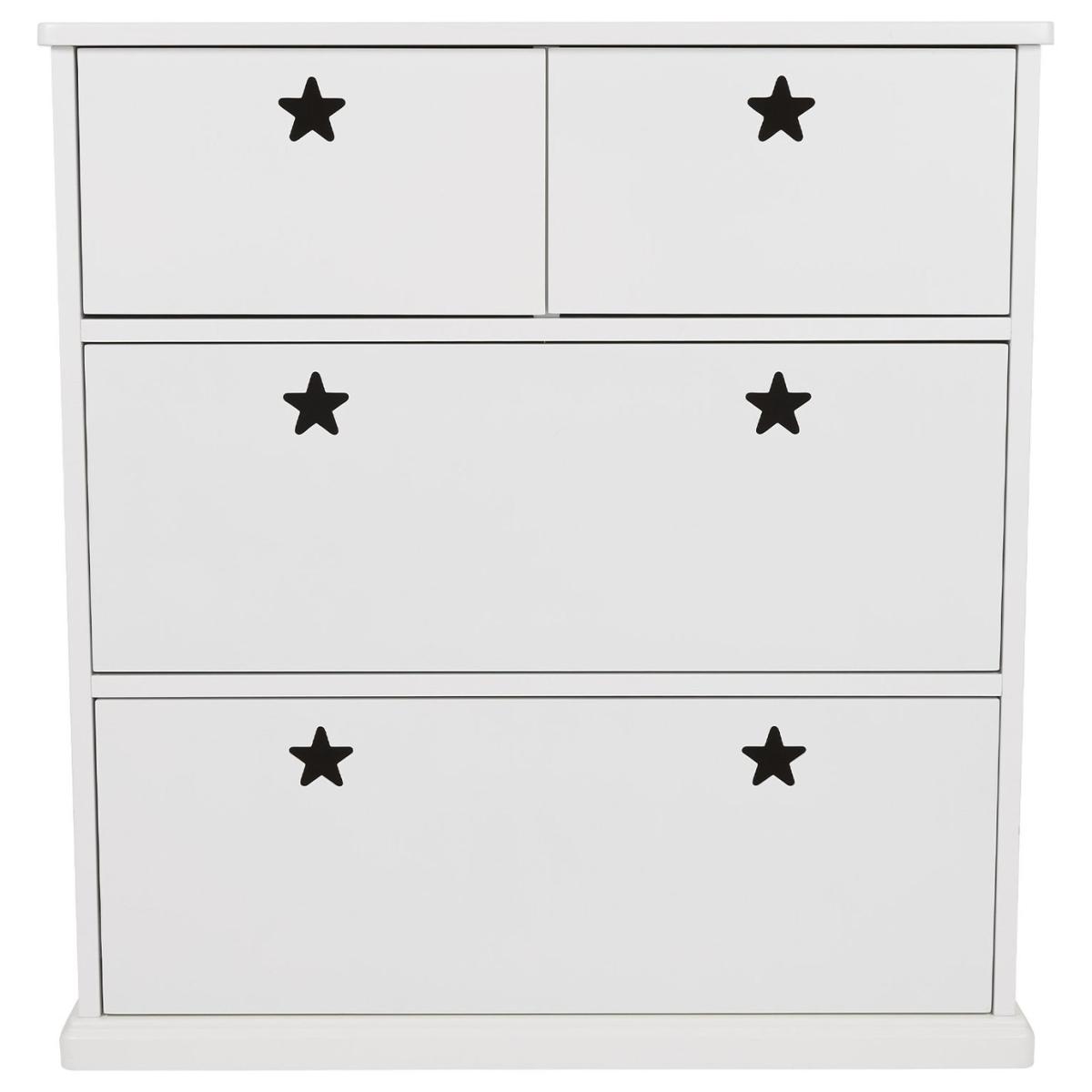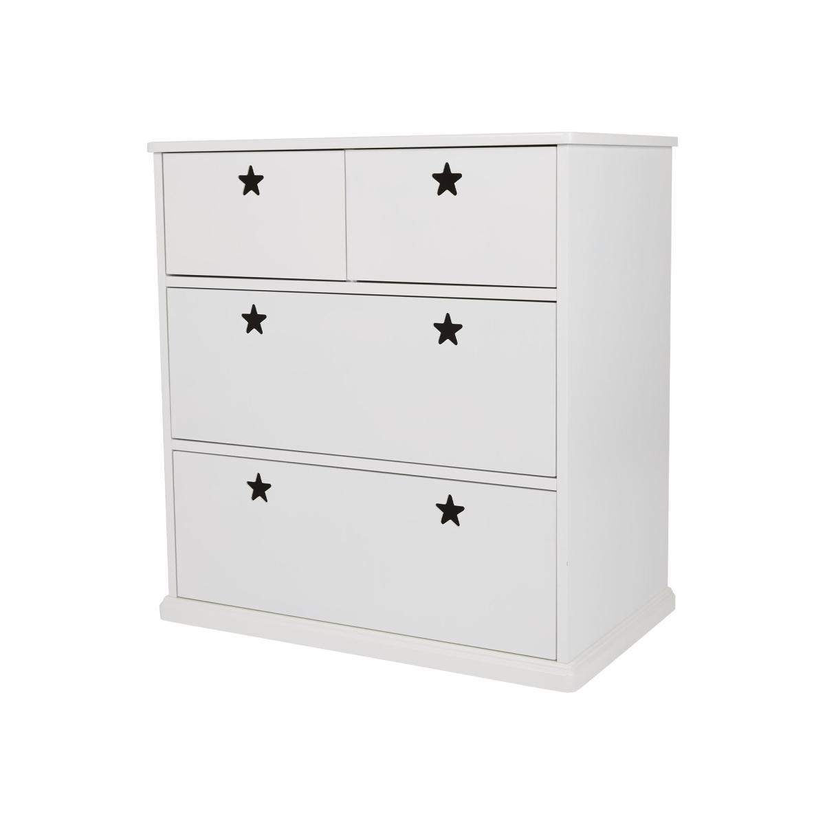 This Star Bright Storage Unit offers superb storage for children of all ages. With its charming star cut-out handles and smooth-sliding drawers, it's as stylish as it is practical. Finished in Bright White, it perfectly complements the Star Bright Single Bed and other pieces in the Star Bright Children's Bedroom Furniture range, creating a cohesive and organised look. Make the most of your child's space with the Star Bright Storage Unit, combining style, practicality, and generous storage in one elegant piece. Made of MDF. Metal handles. 4 drawers with metal runners. Self-assembly - 2 people recommended. If this product is over 60cm high it must be securely attached to the wall to prevent overturning. Dimensions: Size H73.5, W70, D41cm. Weight 32.9kg. Package Dimensions: Package 1 dimensions: H14.2, W49, D78.5cm. Package 1 weight: 19.2kg. Package 2 dimensions: H16, W47.6, D73cm. Package 2 weight: 17.7kg. General information: Manufacturer's 1 year guarantee.