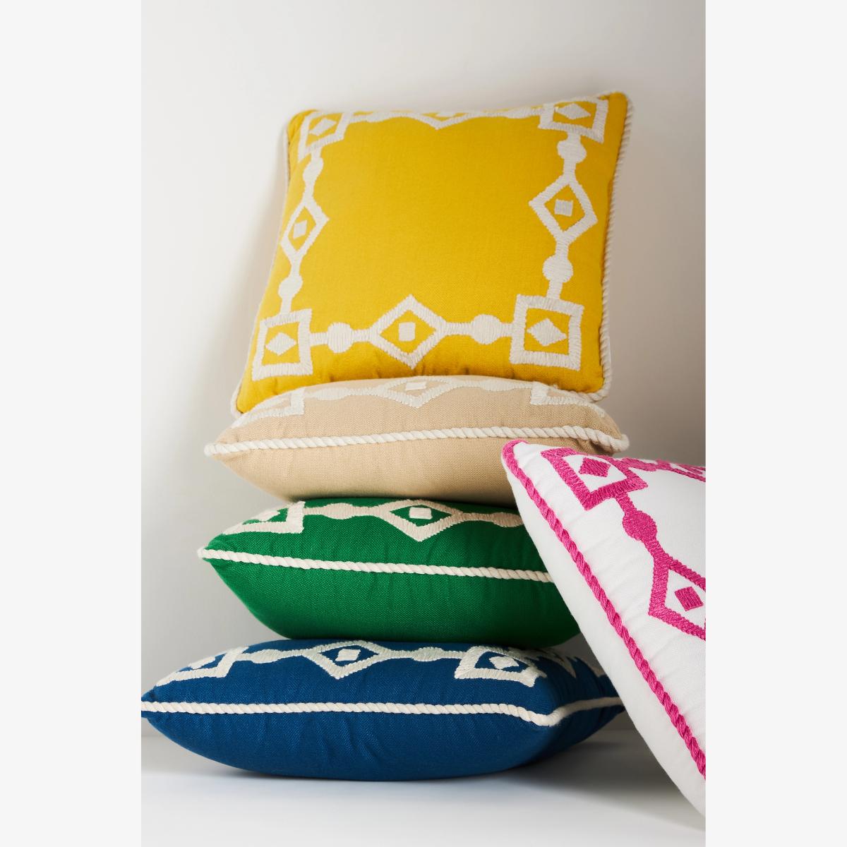 With its bold geometric embroidery, this pillow brings a touch of Grecian charm to any space. * Polyester; polyester fill * Spot clean * Imported