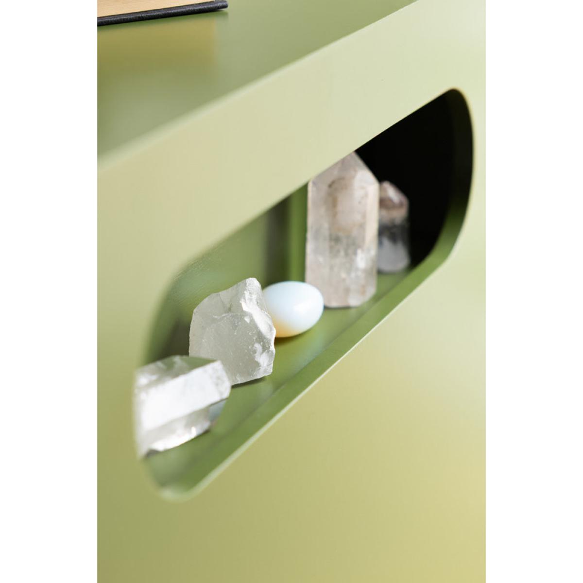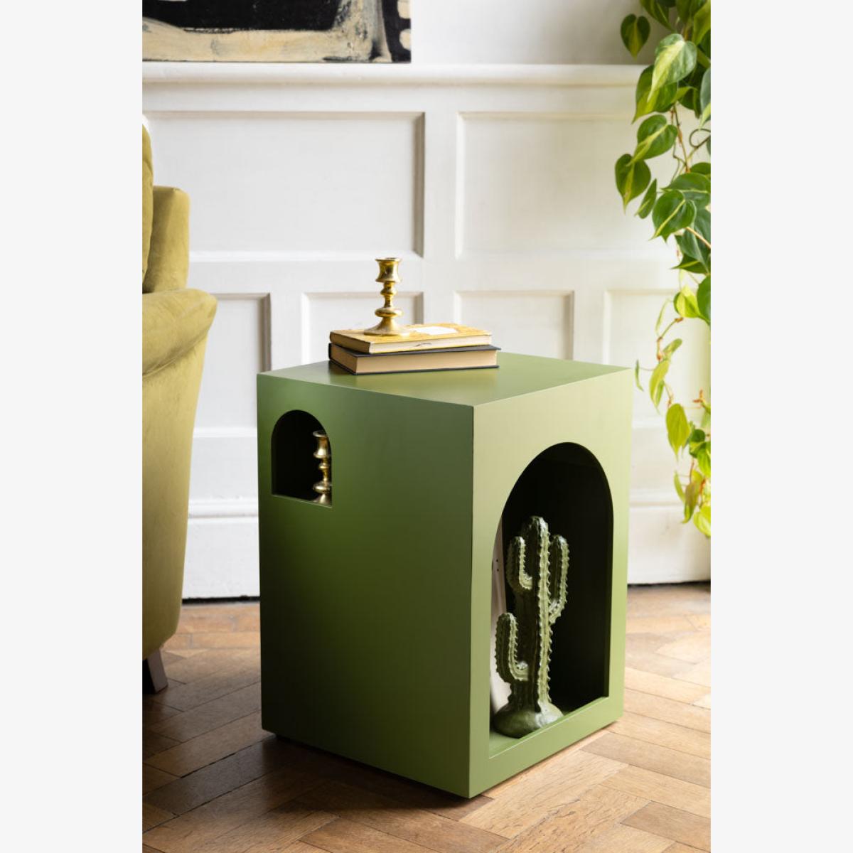 Meet your new favourite unusual side table – the Green Alcove Wooden Side Table. This wooden table is painted in a rich avocado green that somehow just works with everything – like the plant of the furniture world, it fits right in wherever you put it. The sculptural cut-outs and quirky alcoves make it the perfect spot to show off your favourite keepsakes, crystals, or that book you totally meant to finish. It’s bold, fun, and wonderfully offbeat – just the thing to add a splash of personality to your living room décor. Whether it’s next to your sofa, your bed or standing proudly on its own, this little table knows how to make an entrance. - Green Alcove Wooden Side Table - Measures: 36cm x 36cm x 50.8cm - Materials: Wood - Handle with care and wipe clean.