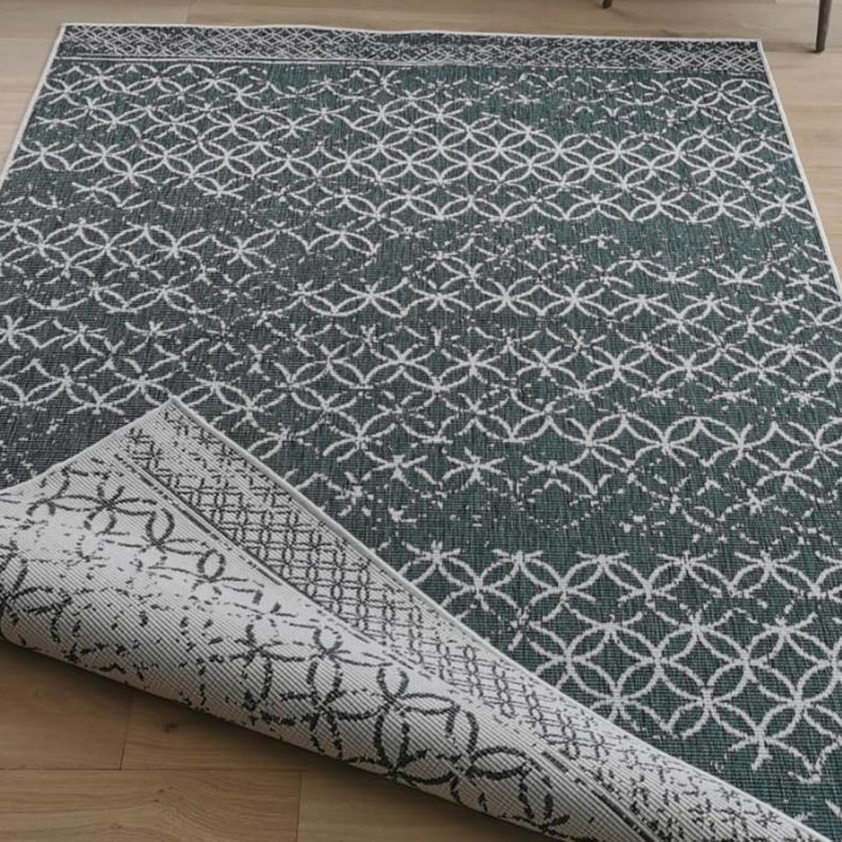 Green and White Distressed Reversible Indoor Outdoor Rug - BW - Green / 200x290cm / 10kg