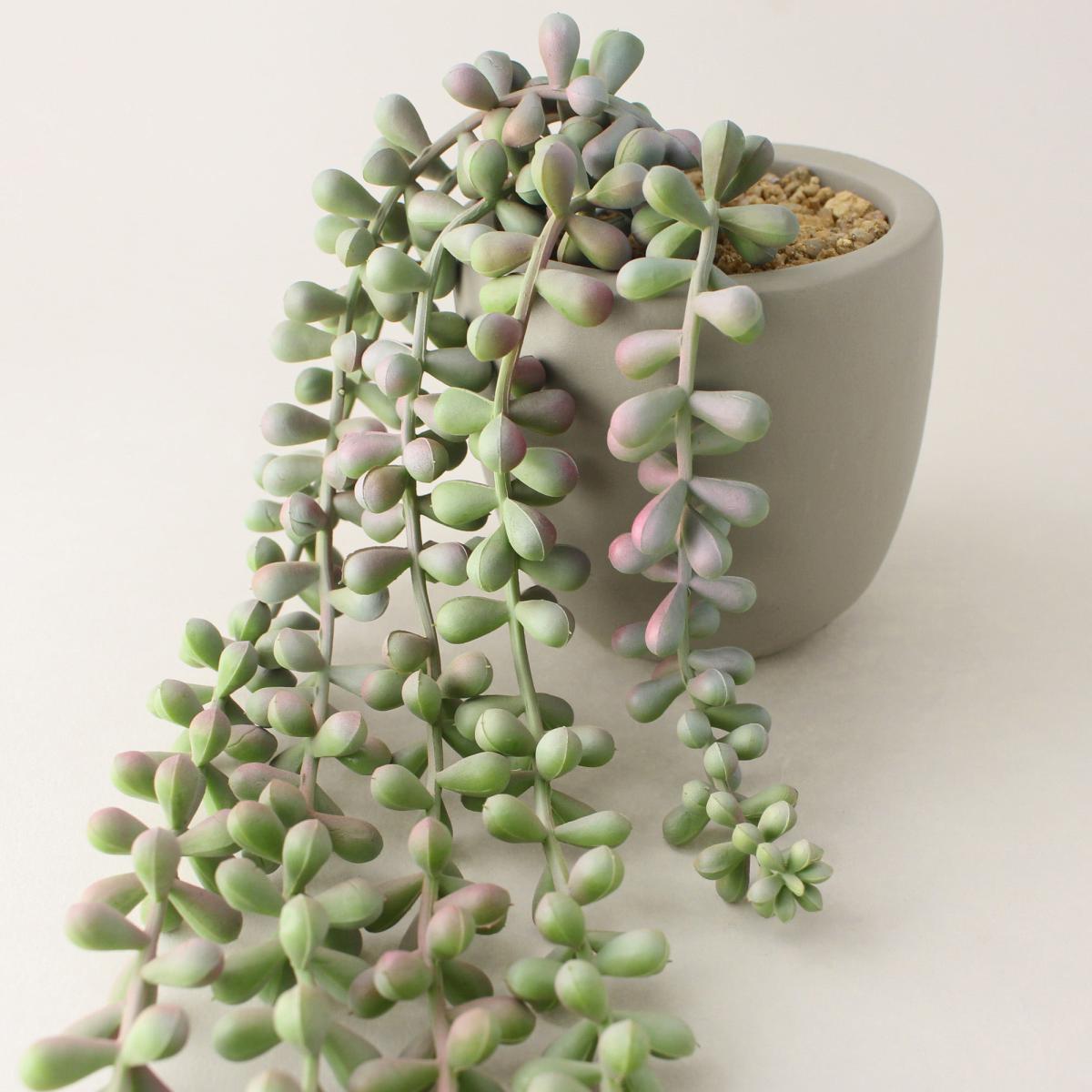 Set in a grey cement pot, this beautiful string of pearls has a realistic design with its green colourway with hints of pink. The low maintenance product is ideal for display on high shelves and tables where the trailing elements can be fully displayed.