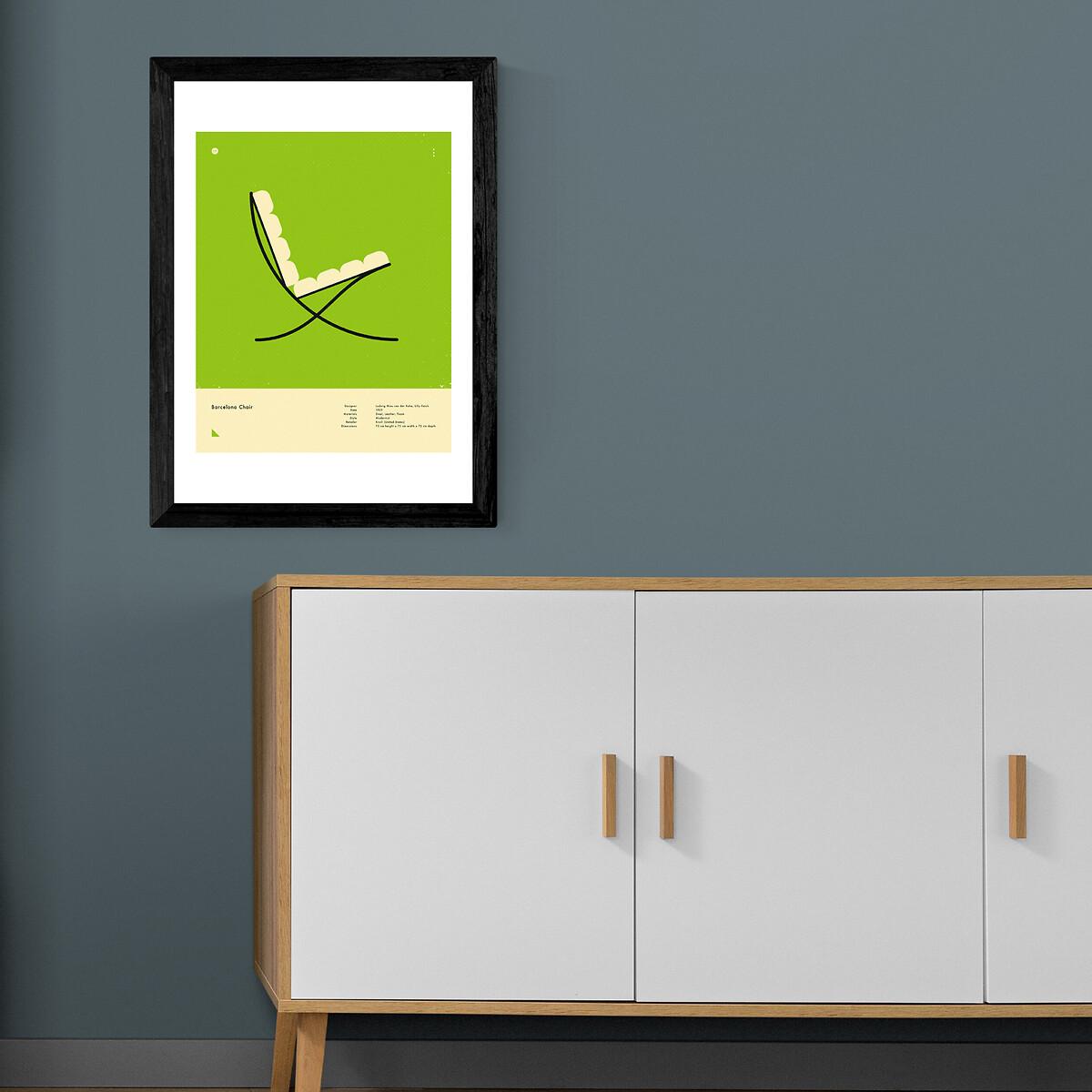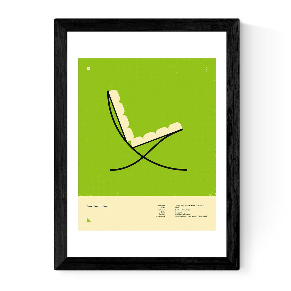 Bring some classic design into your home with this Green Barcelona Chair art print by Jazzberry Blue. Published by East End Prints. Printed with a white border on 210gsm acid-free, archival paper. This product is available unframed (transparent), or comes in a Black, White or Natural Oak Frame. Product Dimensions of Print (not including Frame):A1: 59.4 x 84.1cmA. 2: 42 x 59.4cmA. 3: 29.7 x 42 cm This product will be dispatched by one of our trusted suppliers. You’ll be contacted by their selected courier about your delivery.