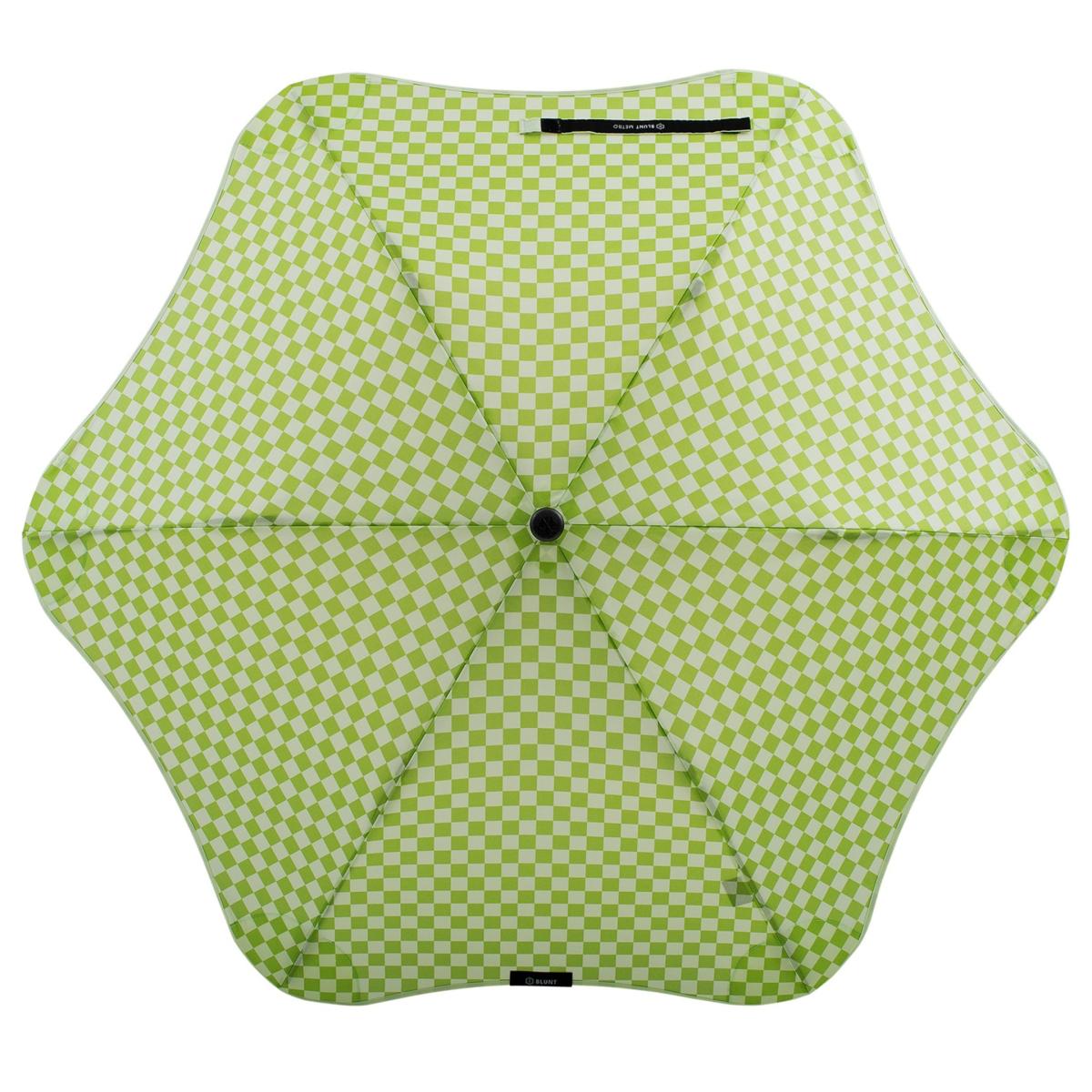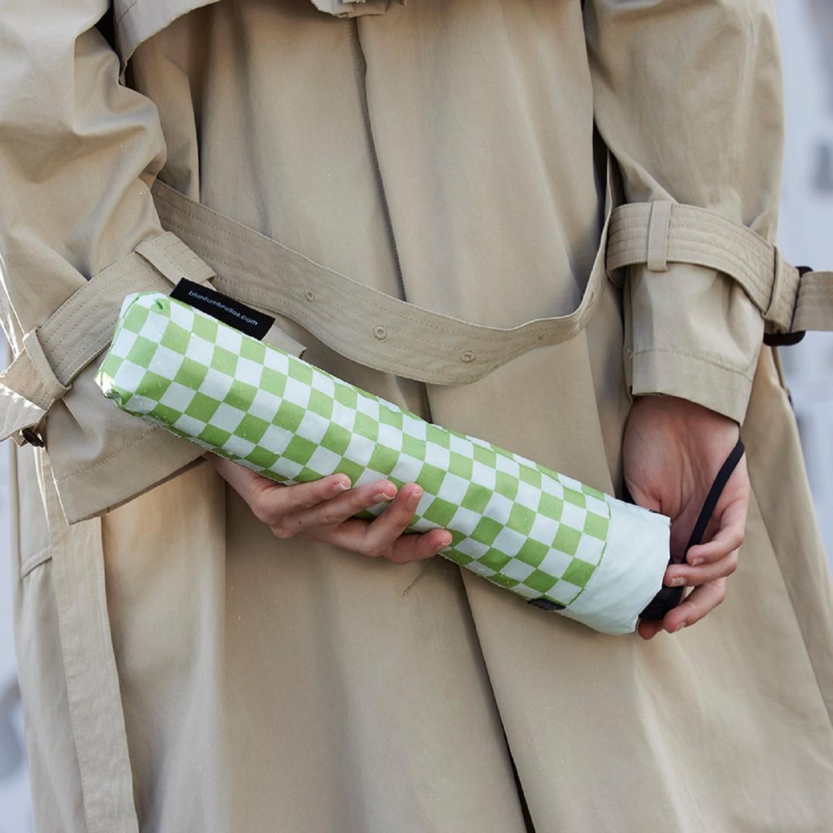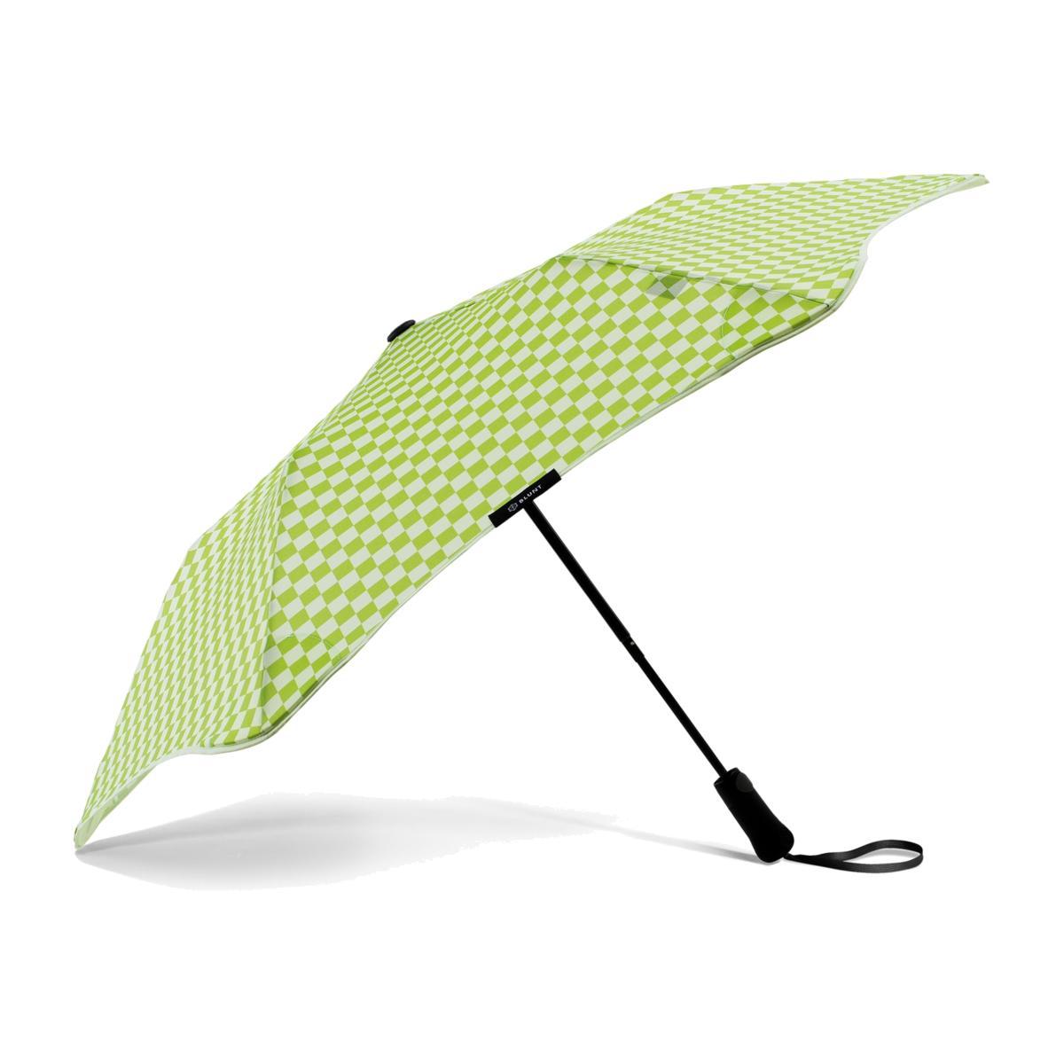 The compact and collapsible BLUNT Metro model, with the iconic checkerboard pattern in a fresh new melon green colourway: Meet the stunning BLUNT MELON CHECK. With 100cm coverage, the Metro is perfectly sized to give you coverage while not taking up too much street space. The Metro features an auto-open canopy to easily open with the push of a button and collapses back down to slide neatly into the carry sleeve. It's also built with a 360° spinning canopy to avoid damaging the when on busy streets. At 37.5cm in length, you can whip your BLUNT out of your handbag or briefcase whenever the weather acts up. The Metro model is built with a mix of strong steel and lightweight aluminium shaft. Comes with a matching coloured sleeve.