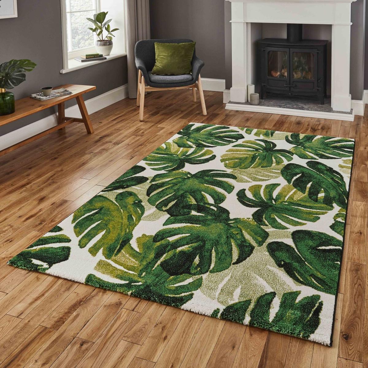 Green Botanical Soft Living Room Rug - Green / 120cm