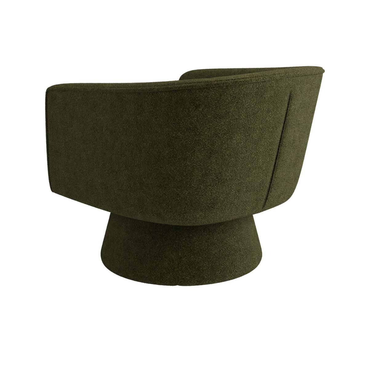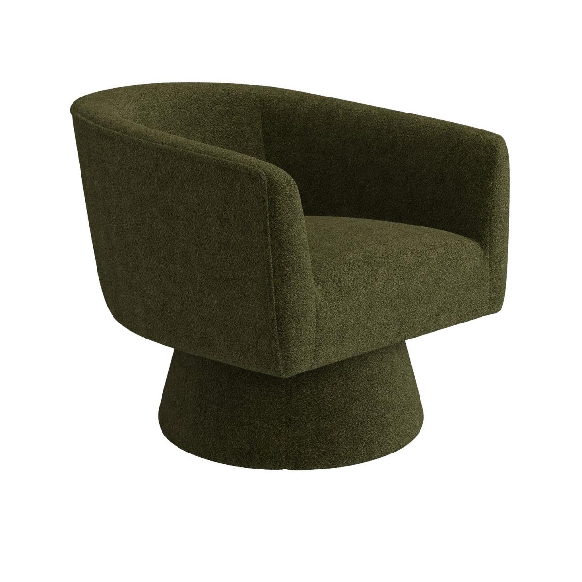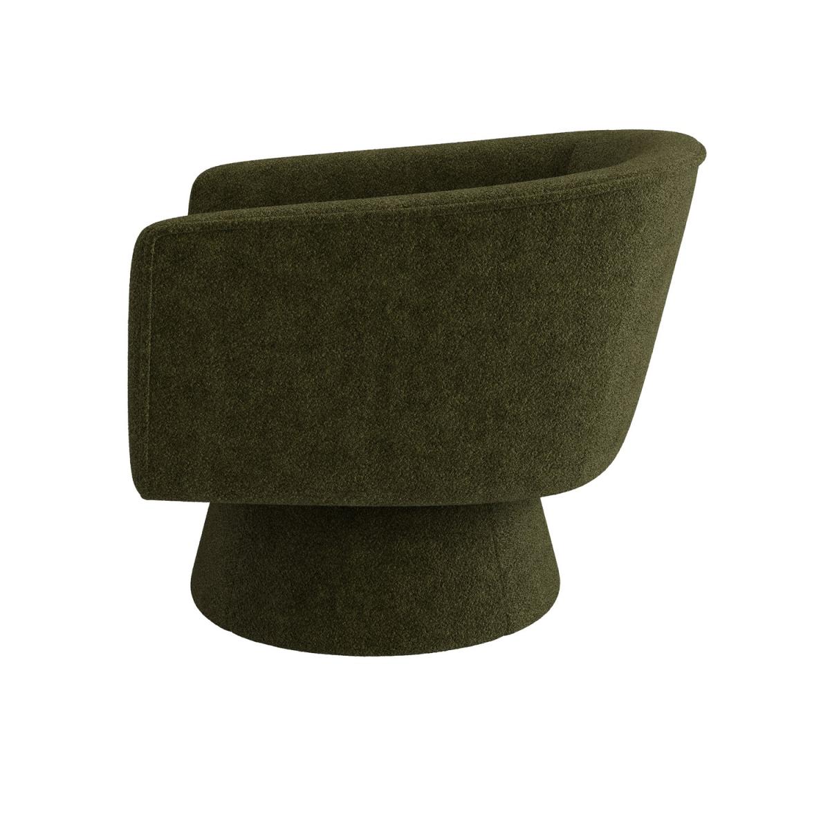 I’m a big fan of this olive-green bouclé swivel chair for its sculptural silhouette and tactile, cosy finish. It works equally well in a modern Scandi living room or as a statement piece in a minimalist home office, adding both comfort and a subtle hit of colour without overwhelming the scheme. For styling, position it on a low-pile neutral rug with a slim black-metal side table and a warm brass lamp to balance the texture. A simple linen cushion or a fine-wool throw in muted tones will introduce an extra layer of depth, while keeping the overall look clean and contemporary.