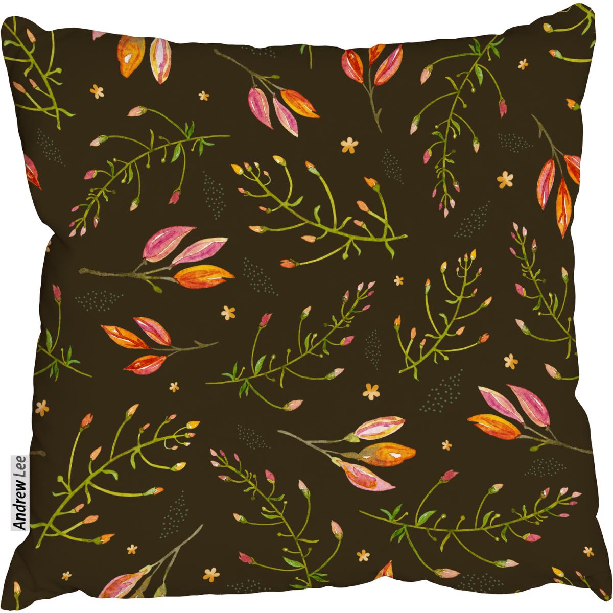 Green branches and flower buds Outdoor Cushion - Orange / 60cm
