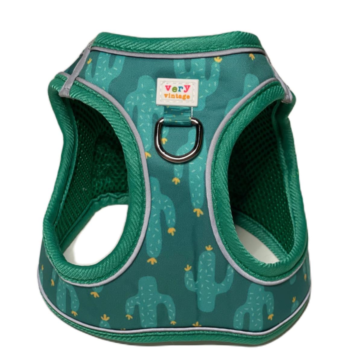 Keep your furry friend safe and stylish with this eco-friendly no-pull, no-choke harness. The soft, padded design and adjustable straps ensure a comfortable fit for small dogs. This cactus-print harness is made from recycled plastic bottles, making it both sustainable and adorable. The no-pull design helps reduce strain on your dog's neck and throat, making walks more enjoyable for both of you. Comes with a matching leash and poop bag holder for your dog walks!