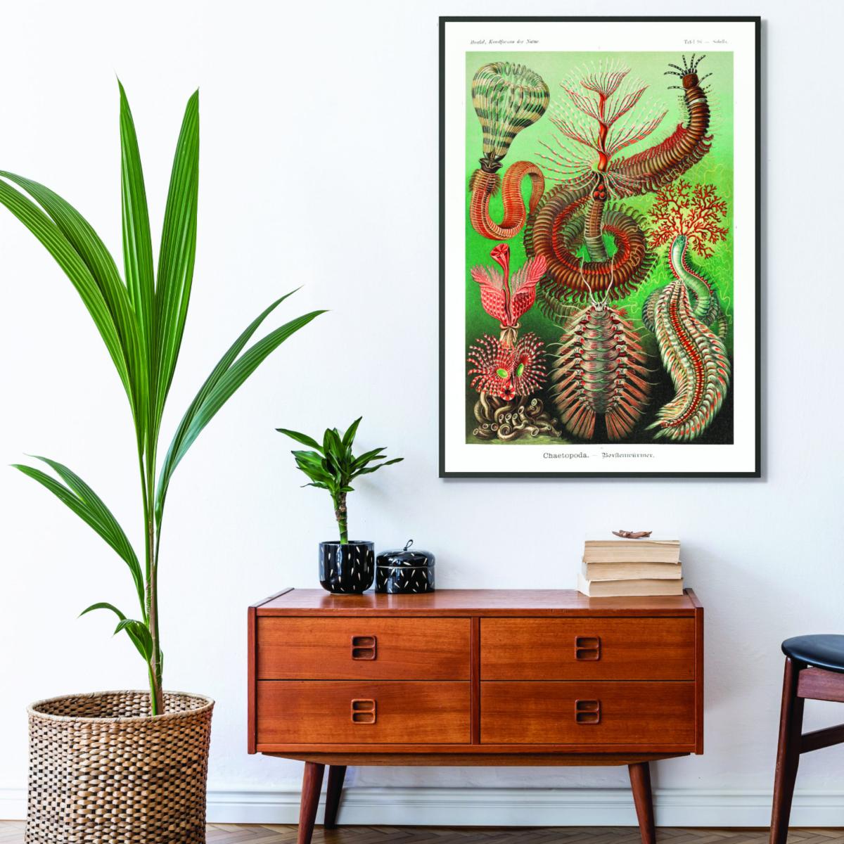 The green Chaetopoda print is a striking piece that lends itself well to contemporary or eclectic interiors. I love how it introduces both colour and scientific intrigue, making it ideal for spaces where a conversation-starting artwork is desired. It works beautifully above a neutral sofa or in a dedicated gallery wall, paired with minimalist frames to keep the focus on the illustration. Practical styling tips include complementing it with other natural-themed elements like wooden furniture or botanical accents, while ensuring it’s placed in a well-lit spot to really make the colours pop. This print is perfect for adding a dash of colour and personality to a living room or study without overwhelming the space.