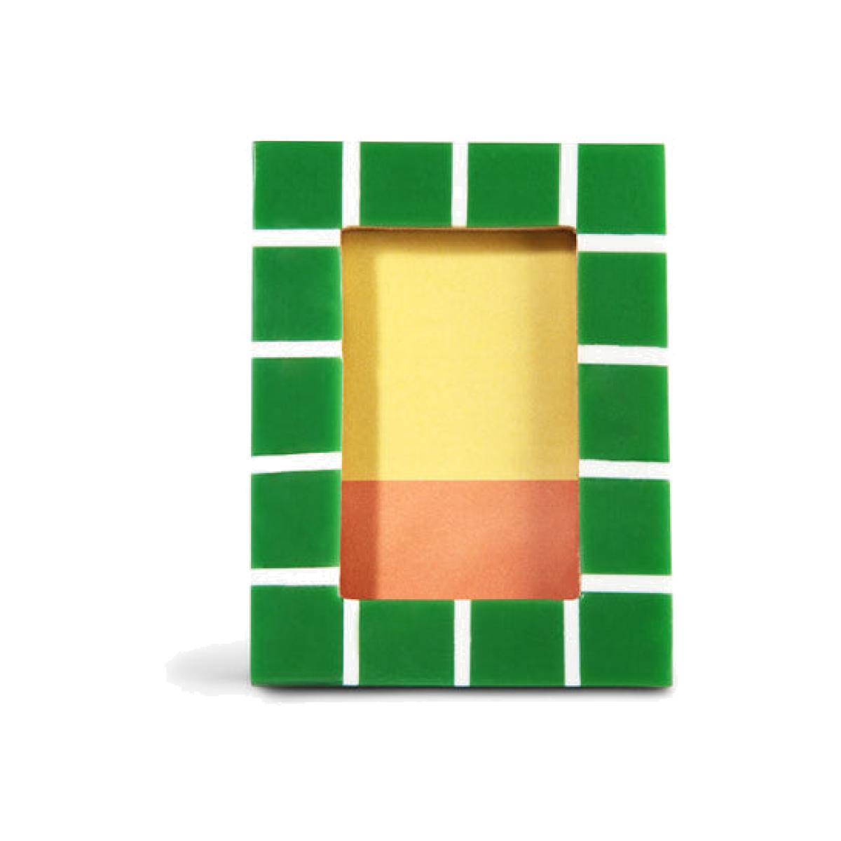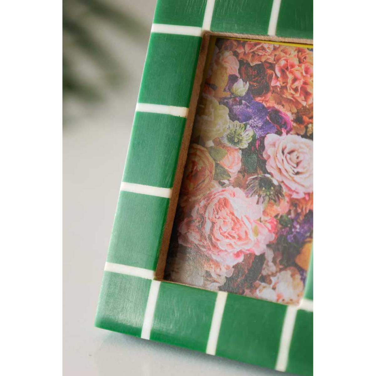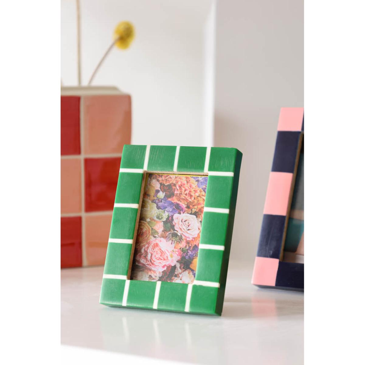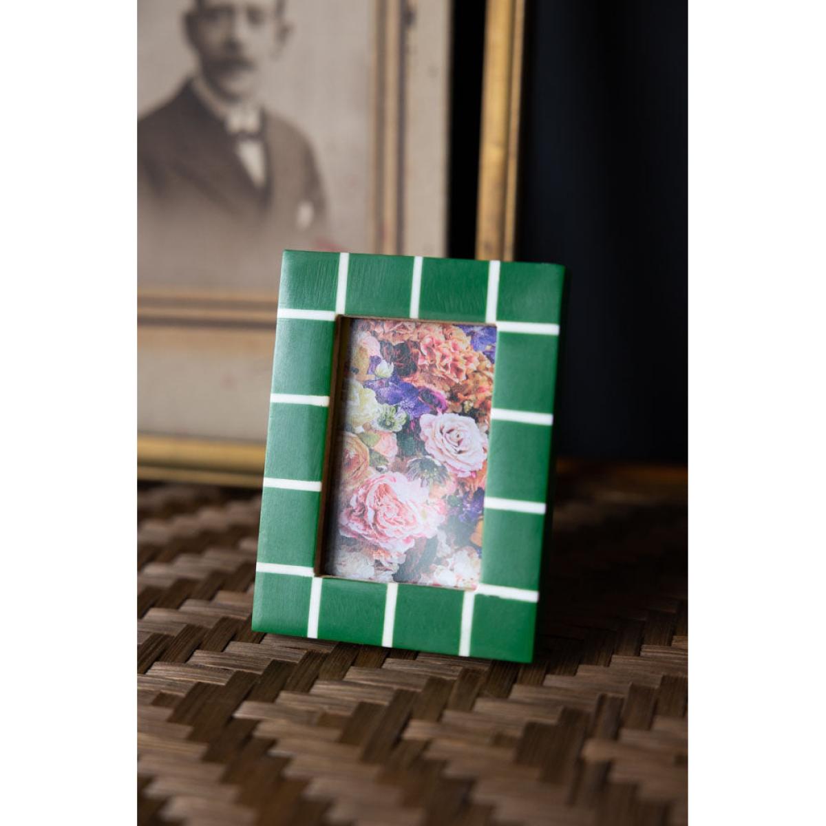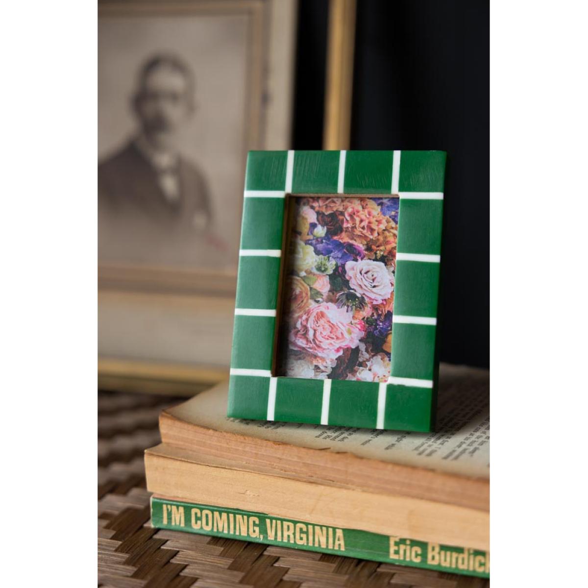 About The Green Check Rectangle Photo FrameThe Green Check Rectangle Photo Frame is the perfect design to ensure your treasured photos take centre stage. Designed in a green and white colour palette, the small polyresin frame features an on-trend checkered pattern. Measuring 10.5cm x 8cm, the picture frame is ideal for mini memories with H7 x W4.6cm photos fitting within the frame. Why We Think You’ll Love The Green & White Check Photo FrameTaking inspiration from fashion, checkered patterns are officially one of our favourite interiors trends of the moment! Designed in a timeless colour combination that goes with everything, this chequered photo frame introduces a splash of colour to any surface in your home. From your desk to your shelves, sideboard or coffee table, pair your favourite picture with the Green Check Rectangle Frame and style alongside a curated collection of books and unique treasures to create a fabulous style spot with personality.