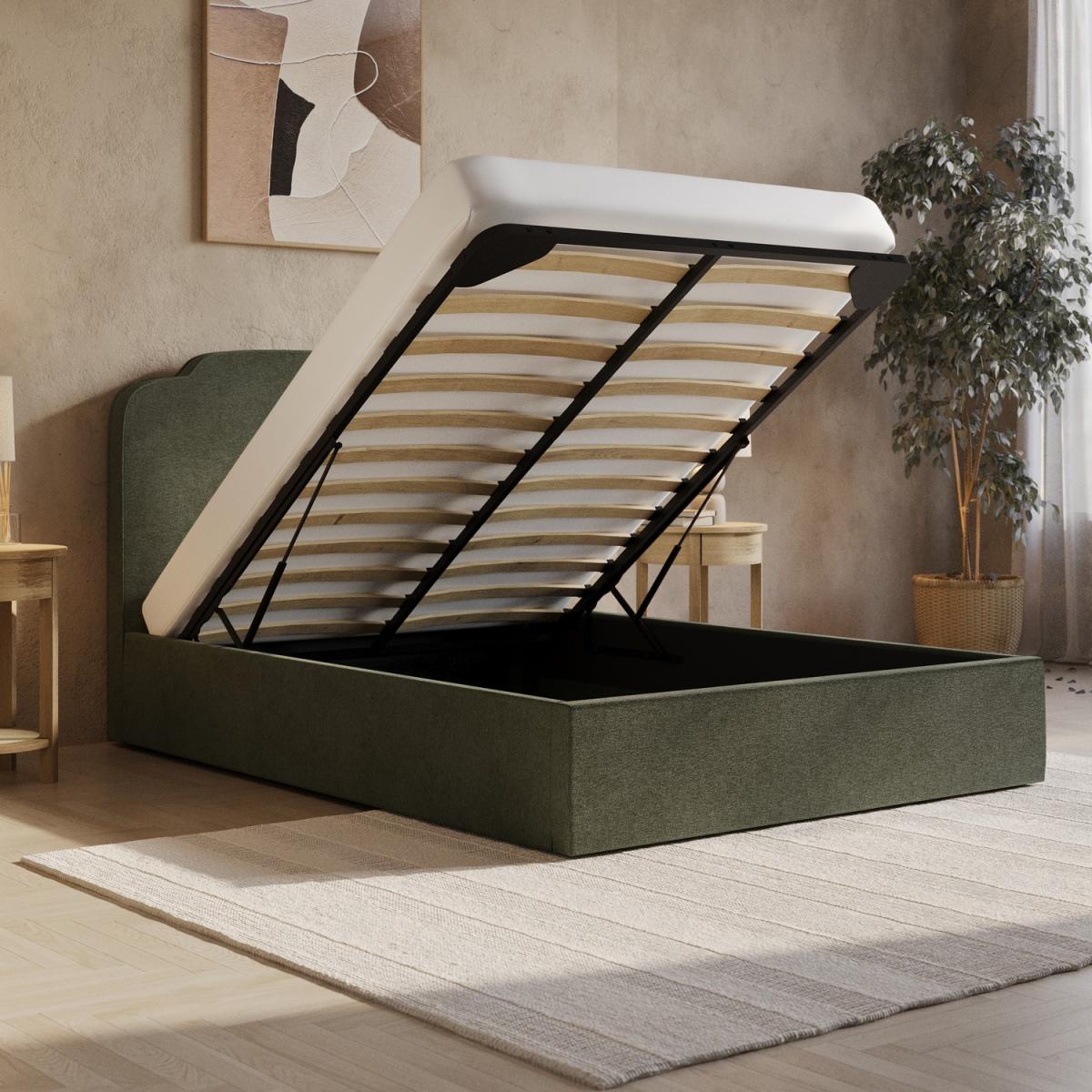 Featuring a gently arched headboard, Siena brings an understated elegance to your bedroom. Upholstered in a soft green chenille fabric, the design exudes warmth and versatility, complementing a range of interior styles. The lift-up base reveals a spacious storage compartment, perfect for keeping bedding, clothes, or other essentials neatly organised. Crafted with durable materials and a robust frame, this bed ensures both long-lasting comfort and stylish functionality. The Siena ottoman bed is beautifully crafted in a sumptuous chenille with an elegant, regency-style headboard for a classic yet stylish design. Upholstered in soft to touch green chenille fabric, this bed effortlessly blends into any bedroom decor. The ottoman base provides easy-access storage, perfect for maximising bedroom space and keeping your essentials neatly organised. This bed fits any UK standard double size mattress.