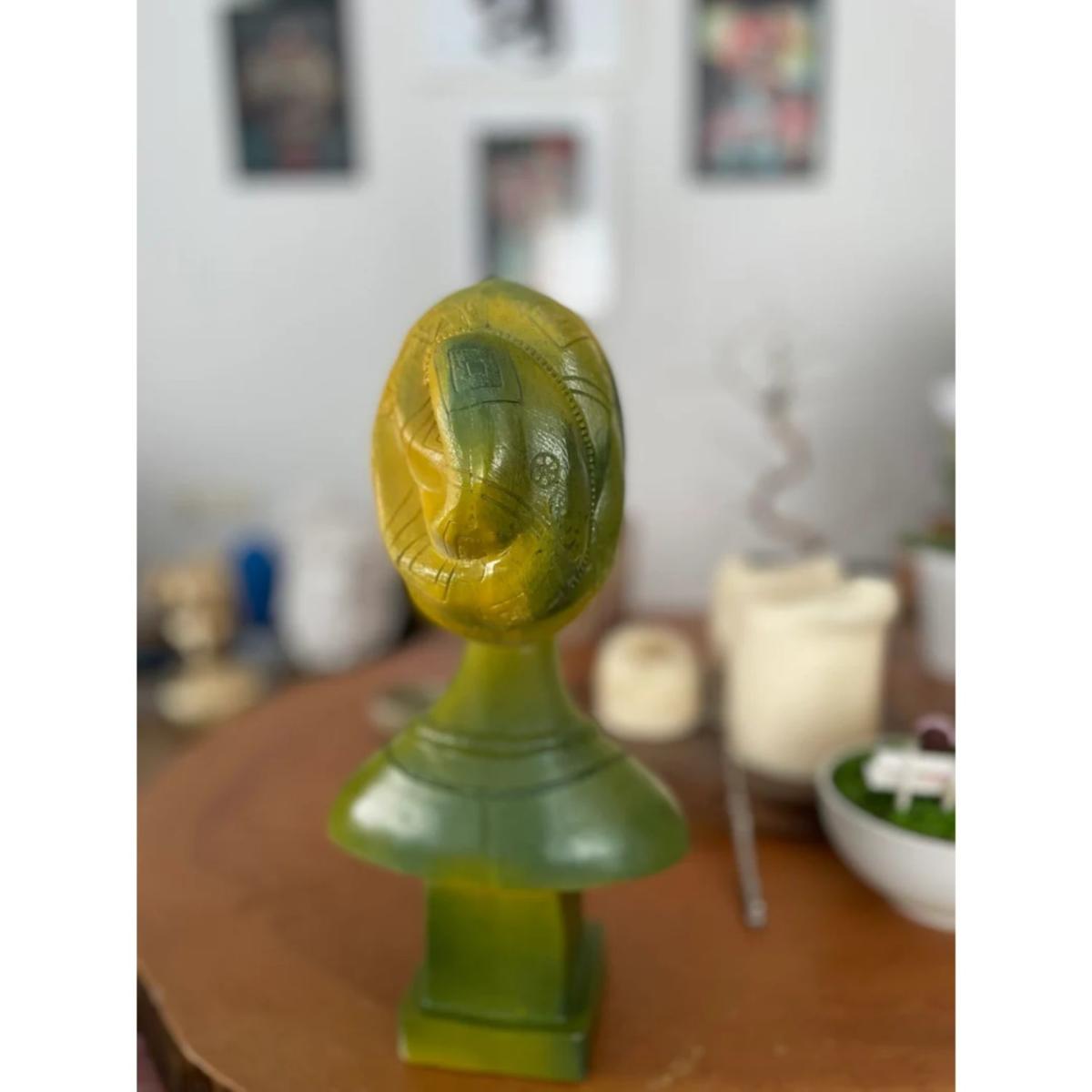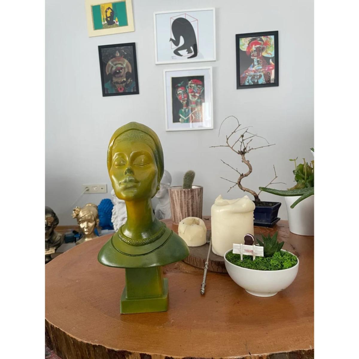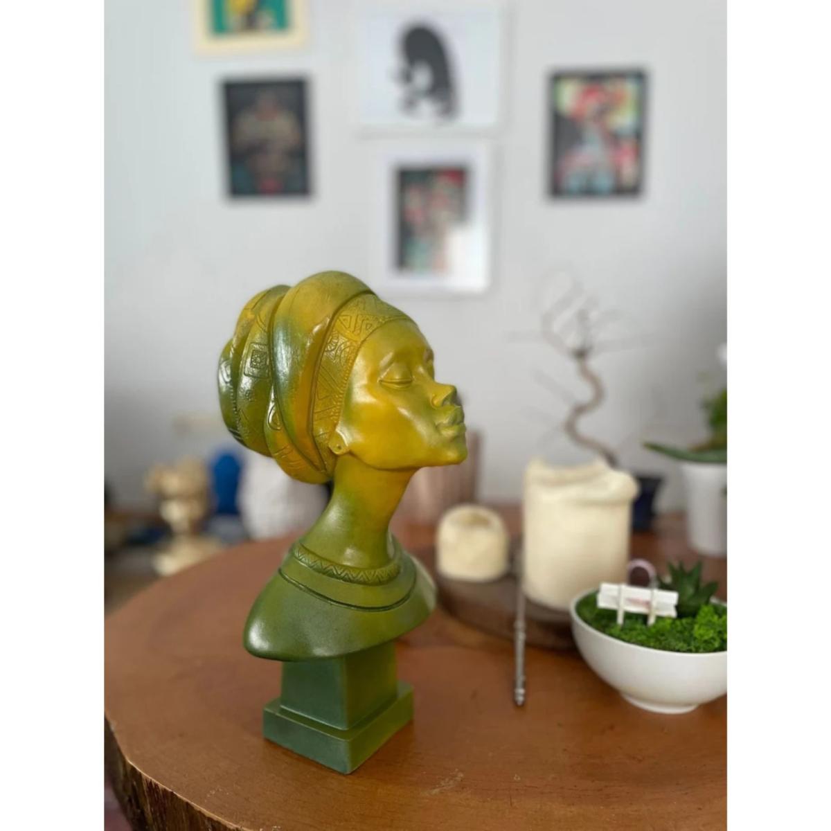 Add a touch of African beauty to your home decor with this stunning Large African Lady Sculpture Statue. Standing at 11 inches tall, this sculpture features a beautiful bust design that captures the essence of African art. The green sculpture with yellow strip accents adds a vibrant and eye-catching element to any room. This African Statue is not only a beautiful decorative piece but also a symbol of culture and heritage. Its intricate details and striking design make it a standout feature in any room. Bring a touch of African elegance to your home decor with this exquisite Large African Lady Sculpture Statue and enjoy the beauty and sophistication it brings to your space.