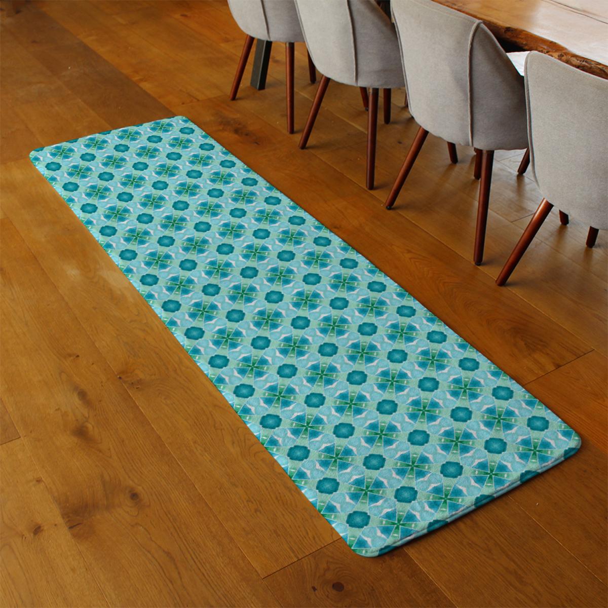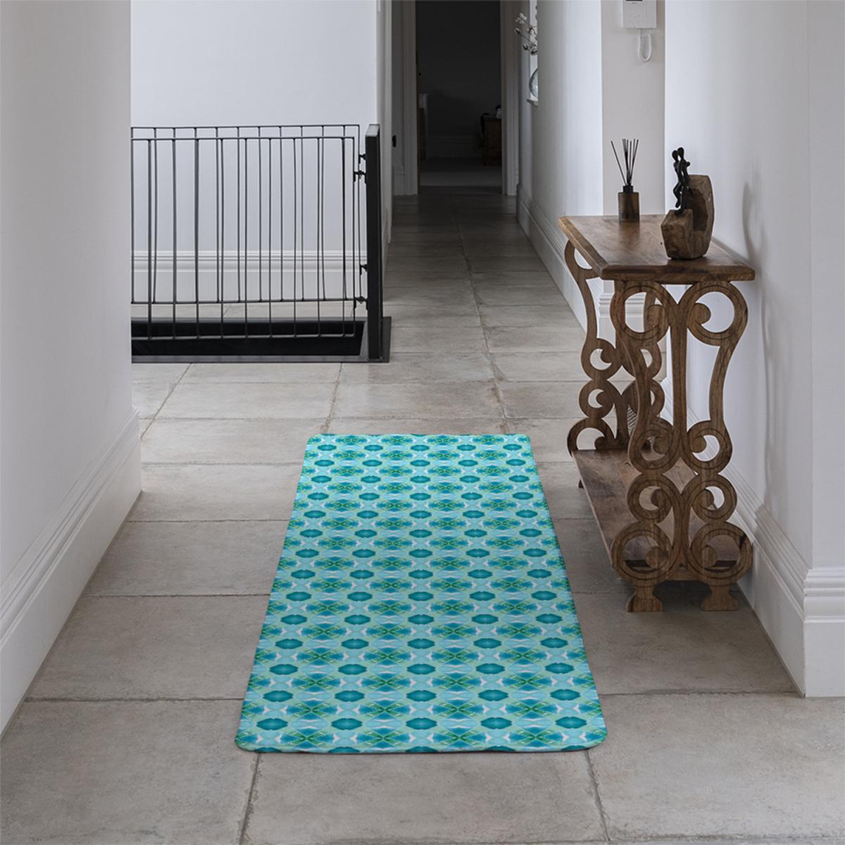 Green Cool Boho Chic Summer Runner Rug - Blue