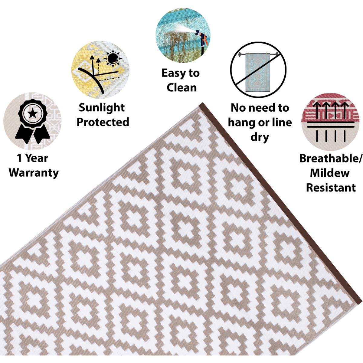 Whether you love to relax by the pool, sunbathe on the beach or simply need a rug for the kitchen that is easy to clean, our eco-friendly rugs will fit the bill perfectly. br. Made from recycled plastic straws, these rugs are water-resistant so you can use them indoors and outside. br. They are so versatile! They are lightweight and easy to carry, making them perfect for picnics and sun worshippers needn't worry as they are UV protected so they won't fade in the sun. If they are sandy from the beach, or covered in dirty footprints in a hallway, these rugs are so much easier to clean than conventional rugs, simply wipe them and they're as good as new. Comfortable to relax on, yet tough enough for high traffic areas of the home, there are so many uses for a Green Decore rug. Available in a range of sizes and designs to suit all tastes.