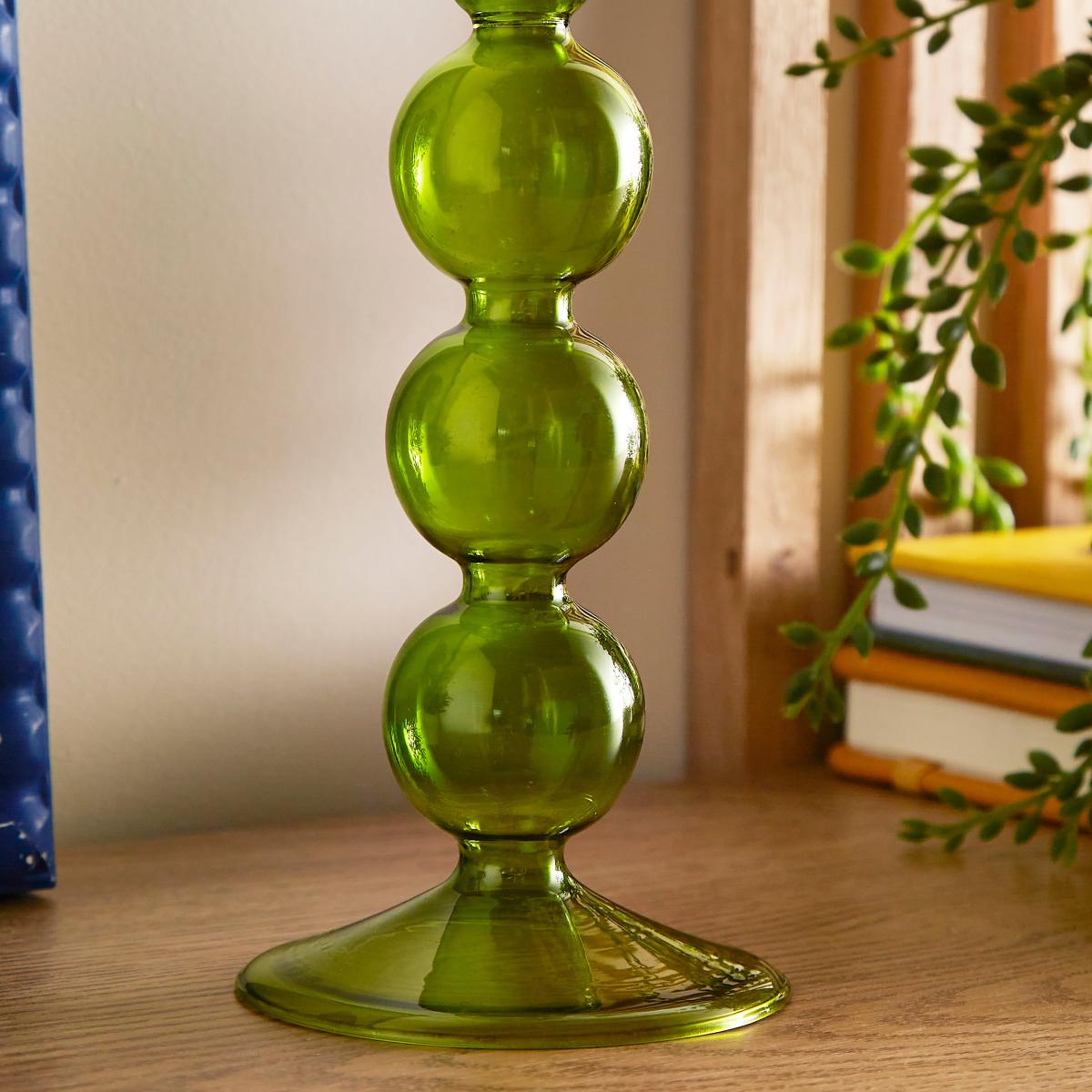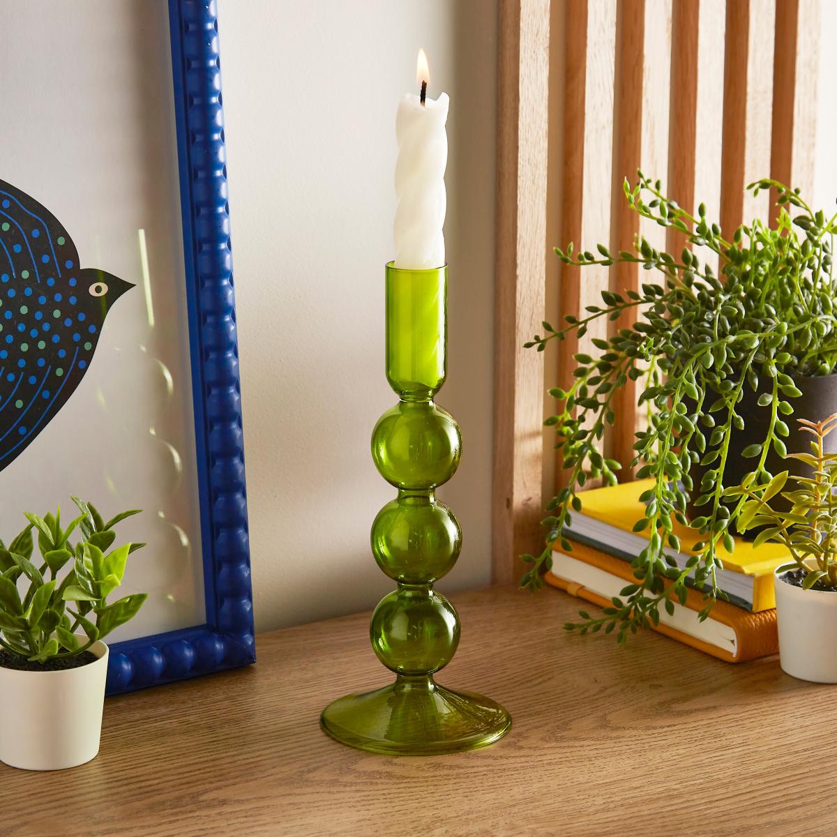 I love the green glass candle holder for its vibrant yet subtle colour, which adds a fresh touch to both modern and traditional interiors. It works particularly well in eclectic or mid-century styles, where its bold hue can serve as a focal point, but it also complements natural textures and neutral palettes effortlessly. Practical styling tips include grouping it with other glassware or candles in different heights to create visual interest, or placing it on a mantle or side table alongside plants or books for a relaxed, curated look. It’s versatile enough to be used day-to-day or for special occasions, making it a great addition to various settings.