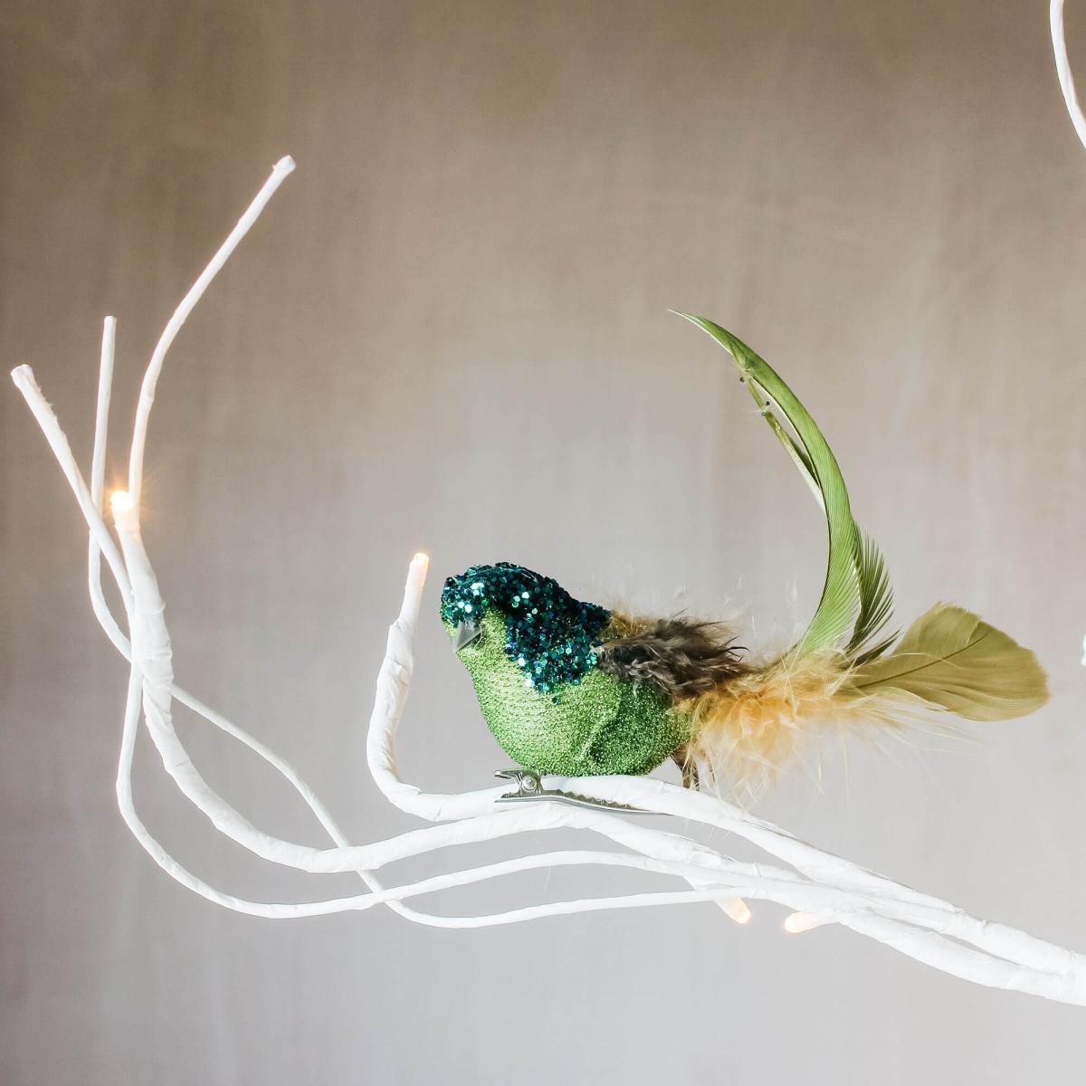 I love this little green glitter bird clip for adding a touch of sparkle and whimsy to your space. It works particularly well in eclectic, boho, or nature-inspired interiors, where playful elements can create visual interest. For styling, consider placing it on open shelving, or attaching it to a plant or feature wall to bring movement and colour. Pair it with other natural textures or metallic accents to let it shine, and keep it as a focal point in a vignette to truly make it stand out. Its size and shimmer make it a charming detail that adds personality without overwhelming the decor.