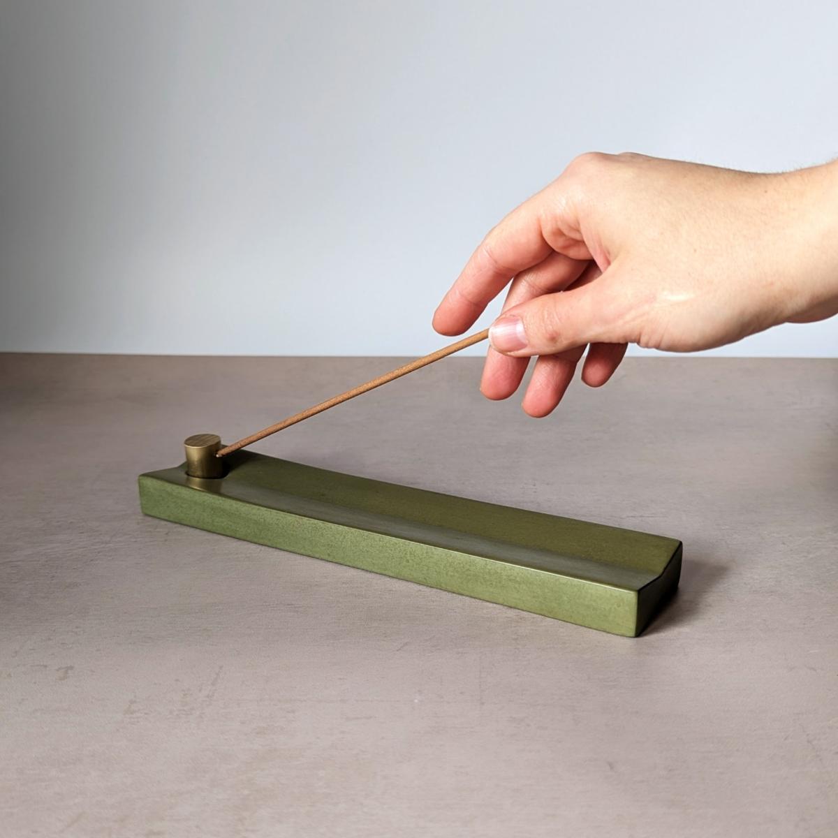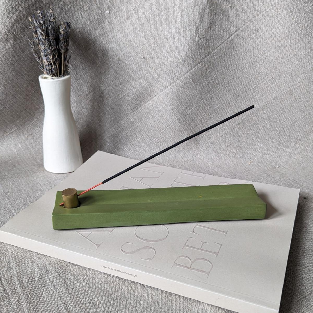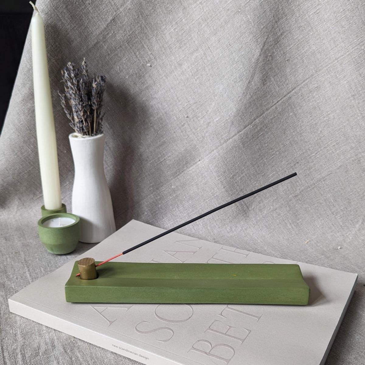 Aura is a modern, elegant incense burner with clean lines. Crafted from eco-friendly concrete and solid cast brass, it comes in a selection of five earthy shades. Featuring a practical design to catch all ashes, this incense holder is mess-free and suitable for Indian incense sticks of up to 25 cm length, Japanese sticks and incense cones. Hand-crafted with care in our South London studio, this incense burner is the perfect combination of form and function for your relaxation ritual.