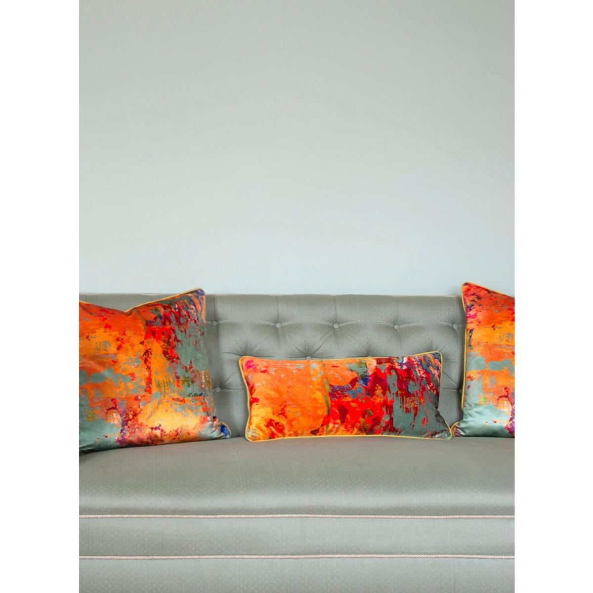 This beautiful abstract design is part of our Grey Stucco collection and illustrates perfectly the mark of the artist. The design is a section of one of Susi's abstract paintings and showcases perfectly a microcosm of a larger work. With its asymmetric design this luxurious oblong cushion is truly 'Art for the sofa' Striving for sustainability and keeping our carbon footprint at a minimum, our cushions are printed in the UK and made by our local artisan makers in Newcastle upon Tyne before being packed up in recycled and recyclable packaging. The inserted cushion pads are made in Norfolk and their duck feathers are ethically and sustainably sourced.