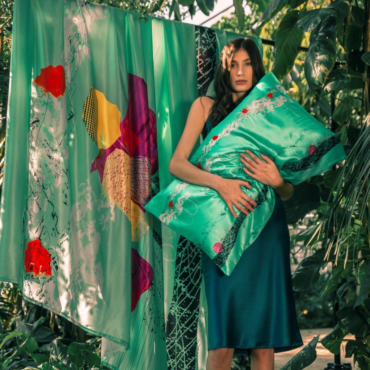 Green Japan Silk Pillow Case Gelso Milano
