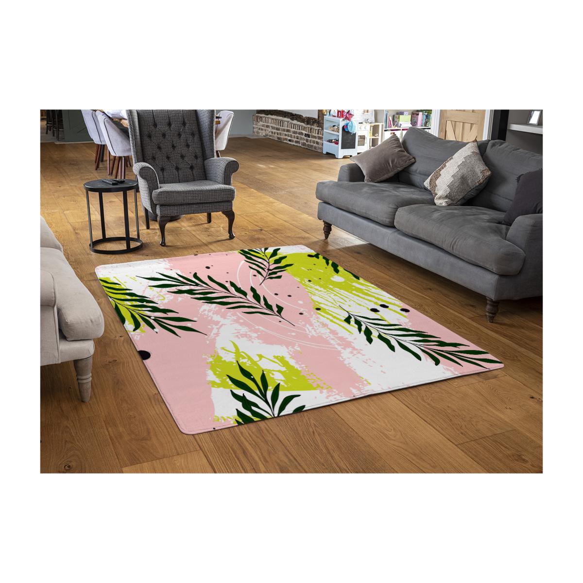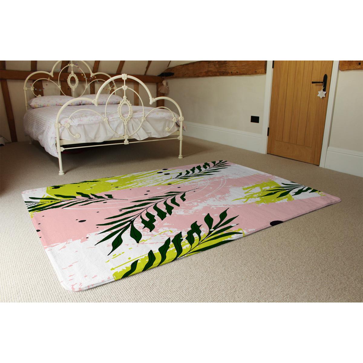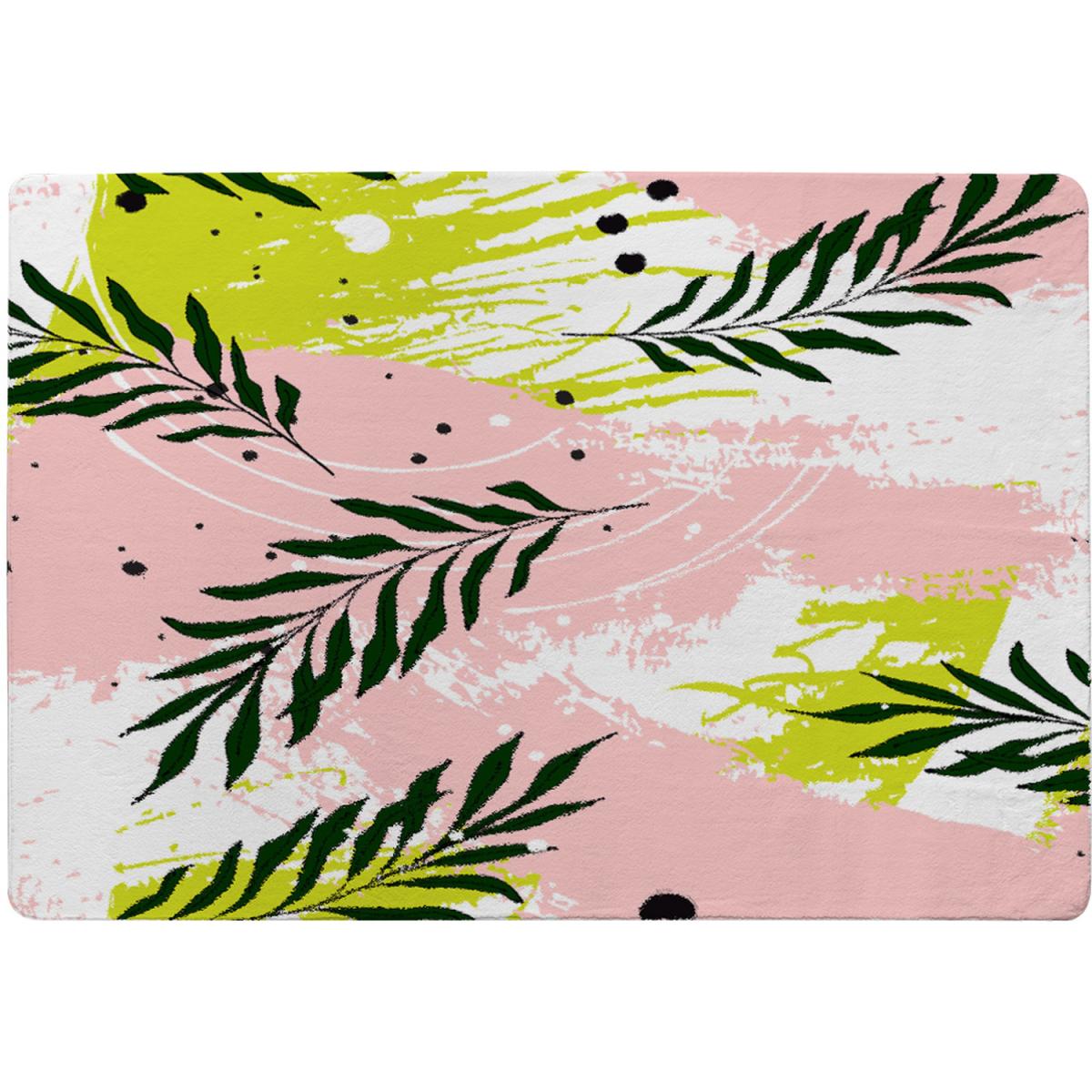 Green Leaves On Brush Strokes Rug - Pink / 150cm