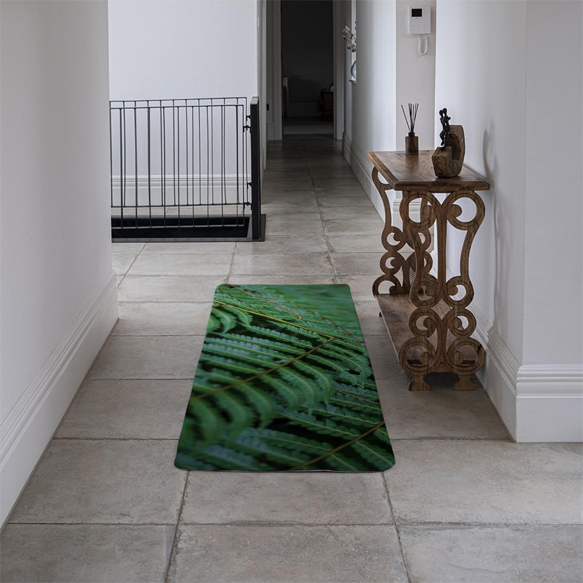 I love the green leaves pattern on this runner rug - it brings a refreshing, natural touch to any space. It's especially suited for contemporary or minimal interiors, where the greenery can serve as a focal point, or in more relaxed, eclectic settings to complement organic decor. Practical styling tips include placing it along a hallway to add visual interest, or at the entrance of a living room to create an inviting vibe. Pair it with neutral furniture pieces and simple accessories to let the vibrant pattern stand out, or combine with indoor plants for a cohesive natural theme. It's a versatile piece that can brighten up hallways, kitchens, or even bedrooms with its lively design.