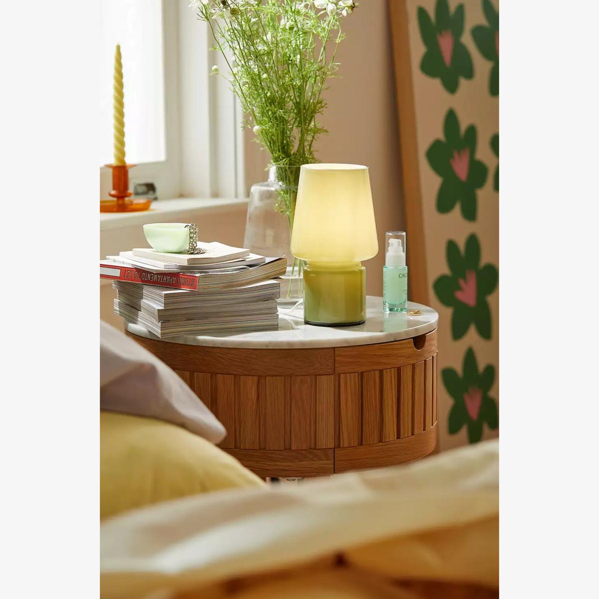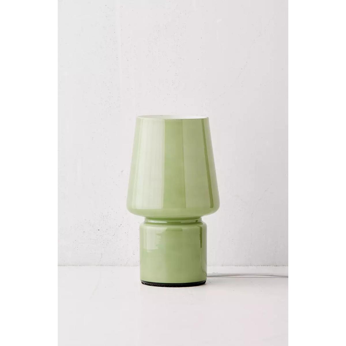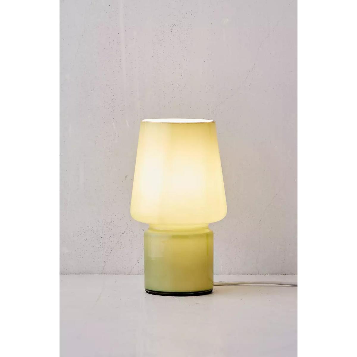 Small table lamp in a translucent glass construction, complete with curved edges and an open-top silhouette. Frosty glass lamp emits a warm glow when turned on, perfect for adding to your bedside table or bookshelf. Battery powered for versatile portability. **Content + Care** \- Glass, LED \- Wipe clean \- Requires 2 x AA batteries (not included) **Size** \- Dimensions:Dia: 12.5cm x H: 21cm \- Wattage/Voltage: 40W/120V \- Weight: 1.43 lbs \- Shipping package dimensions: L: 15cm x W: 15cm x H: 23cm