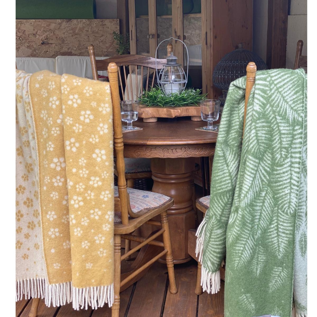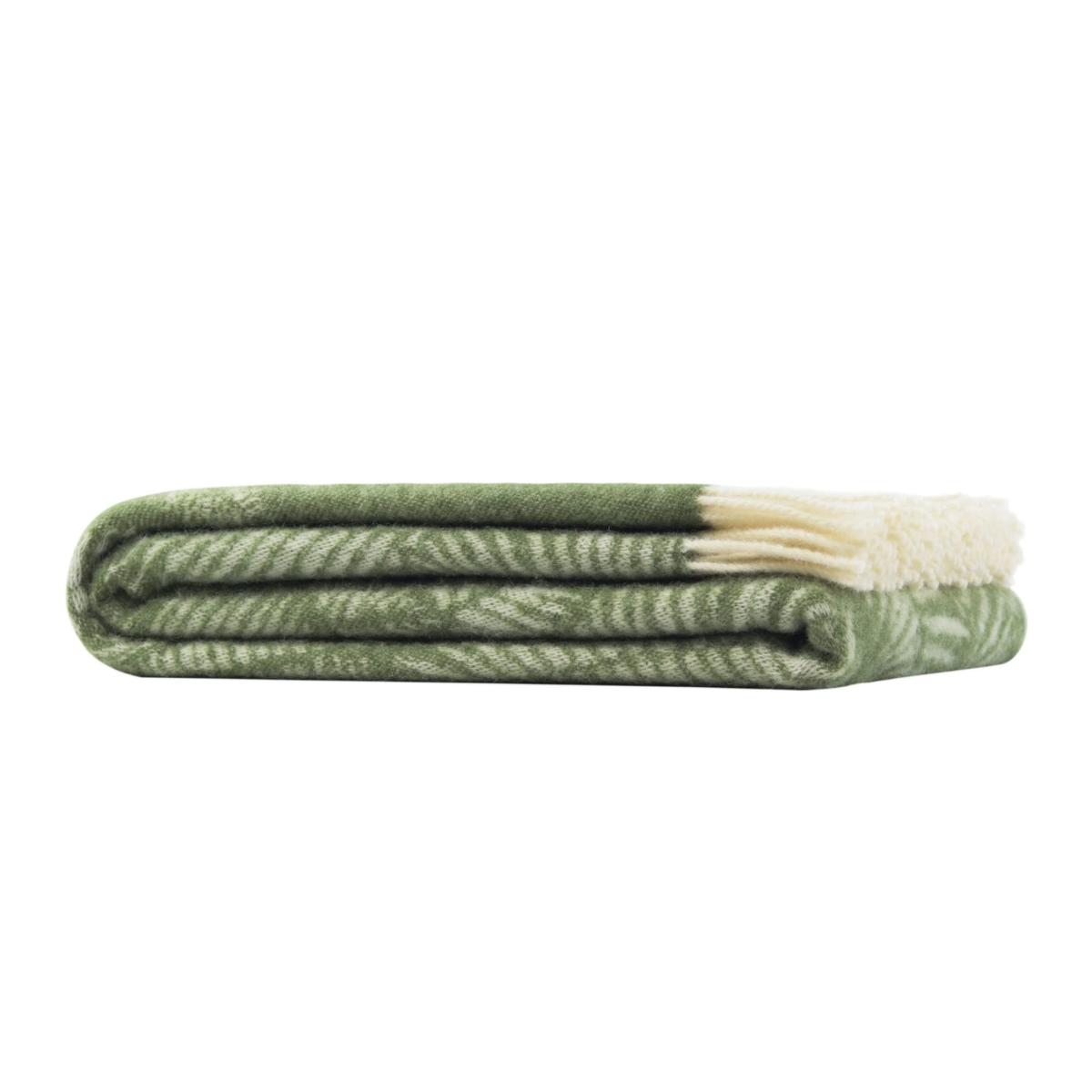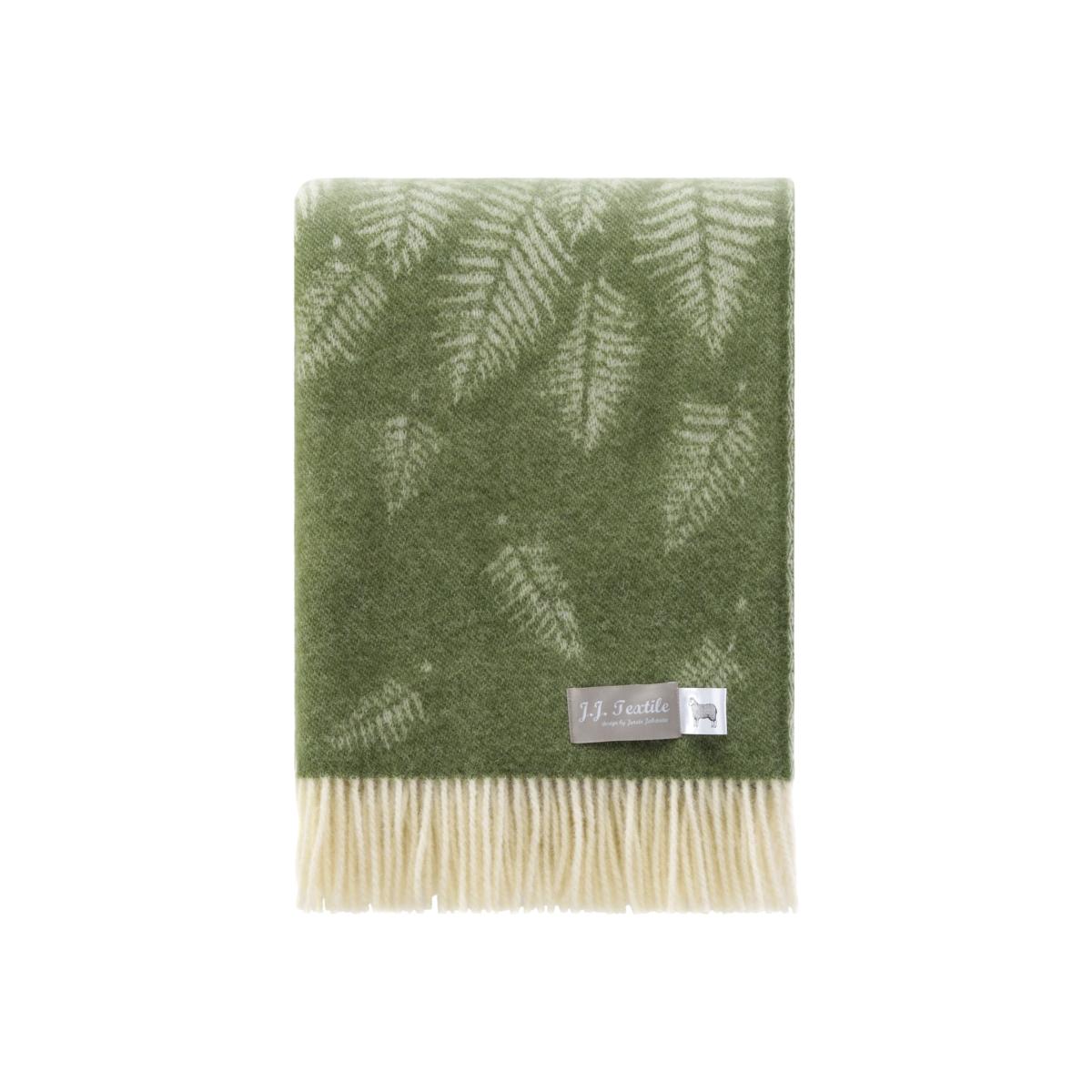 Green is often thought to represent tranquillity, a colour that symbolises nature. This throw is all of that. Bring nature and calm into your home with this 100% wool throw. Take a breath, relax and envelop yourself in nature and tranquillity with this stunning throw inspired by the natural beauty of ferns. With a subtle design of delicate fern fronds, stripes in a rich green colour-scheme, this throw really stands out. Finished with a fringed edging, you can almost begin to feel the movement of the ferns. J.J. Textile deals in exclusive woollen and cotton textile products, designed with love and passion by Jurate Jakstaite.