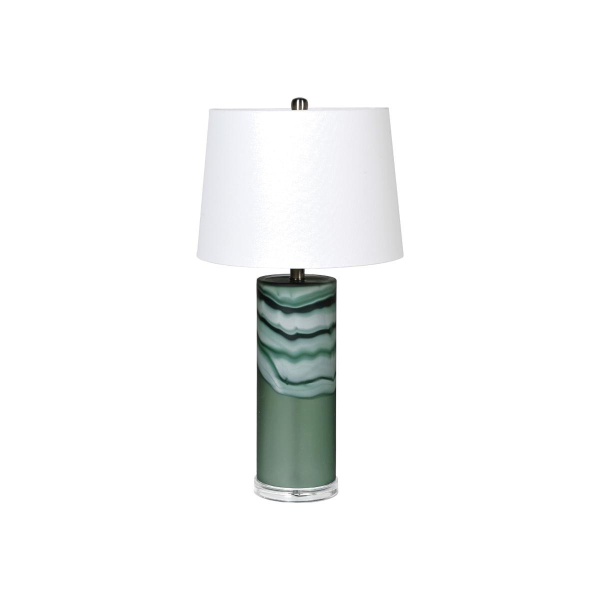Add some wow factor to your sideboard or table with the Green Marble Table Lamp. Gentle hues of green and blue are the perfect accompaniment to this glass lamp, creating a serene looking feature that will add an elegant feel to any room.  Complete with a white lamp shade to give this accessory a clean finish, the Green Marble Table Lamp will add a calming ambiance to your home with its warming light.
